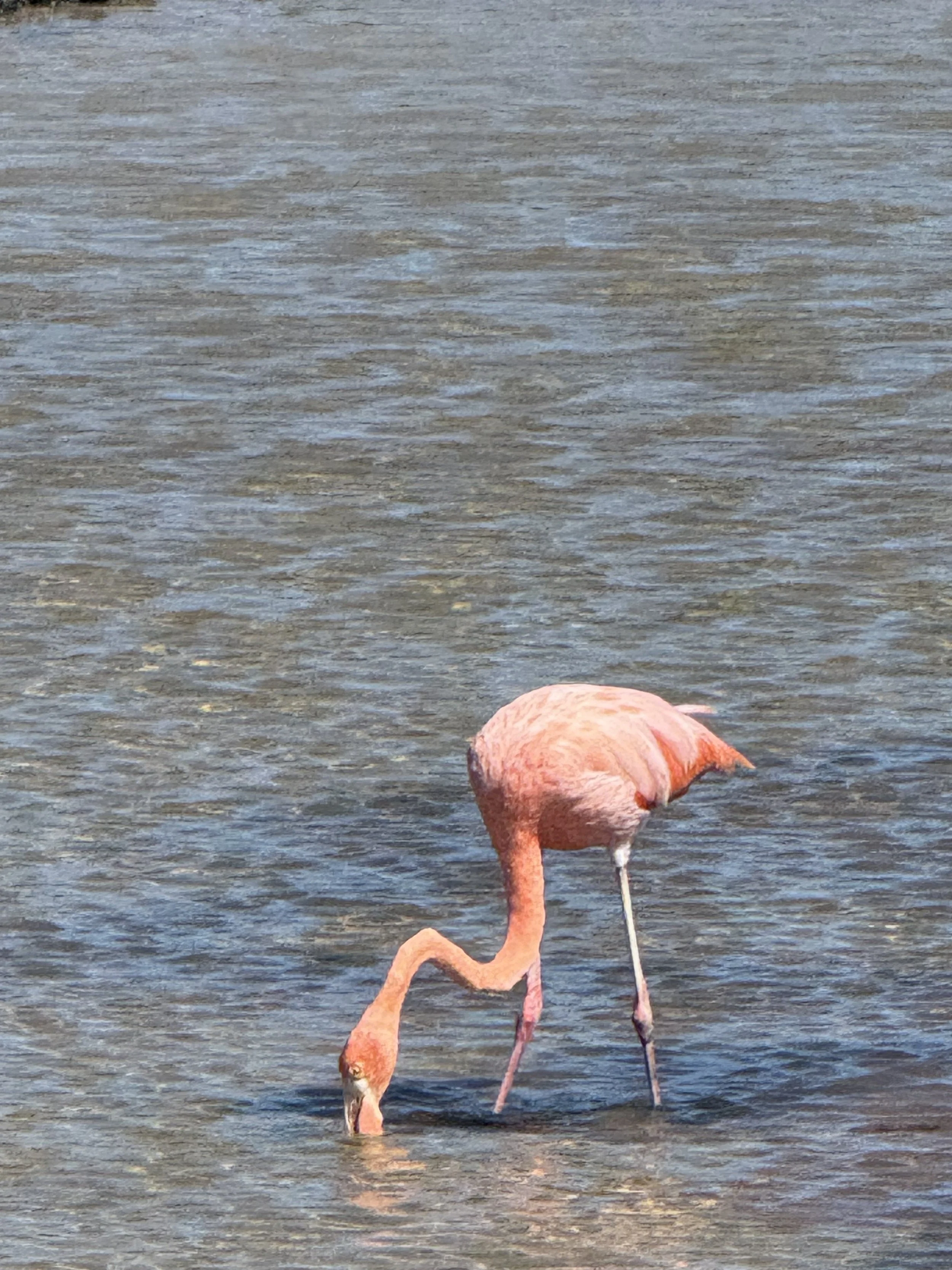 Later we walked along the Bachas Beach. Our guide pointed out 3 more turtles off shore. We also found a pink flamingo in area behind the sand dunes. We were not allowed to walk on the S.A. dunes, because they are the nesting grounds for the turtles.