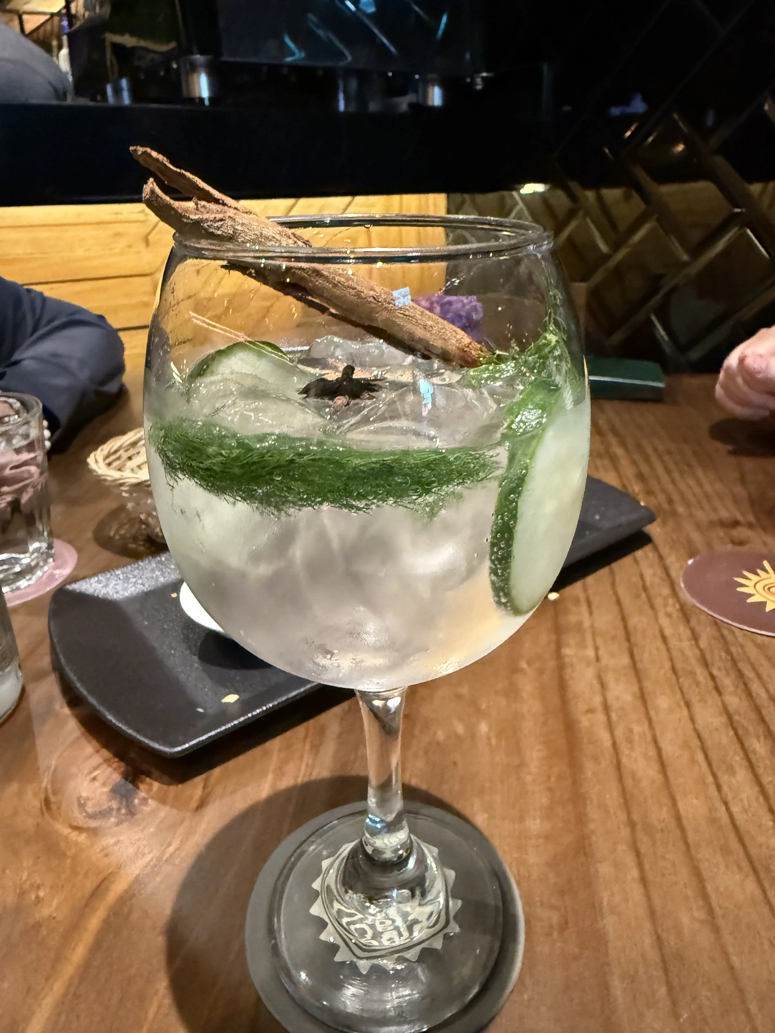 Ended the evening with cocktails in the lobby bar of the hotel.. They had a Peruvian Gin called Intira made in Cusco. I had to try as I do love my gin and tonics!. I really enjoyed the flavors. They even served it in a proper gin and tonic glass garnished with an orange peel.