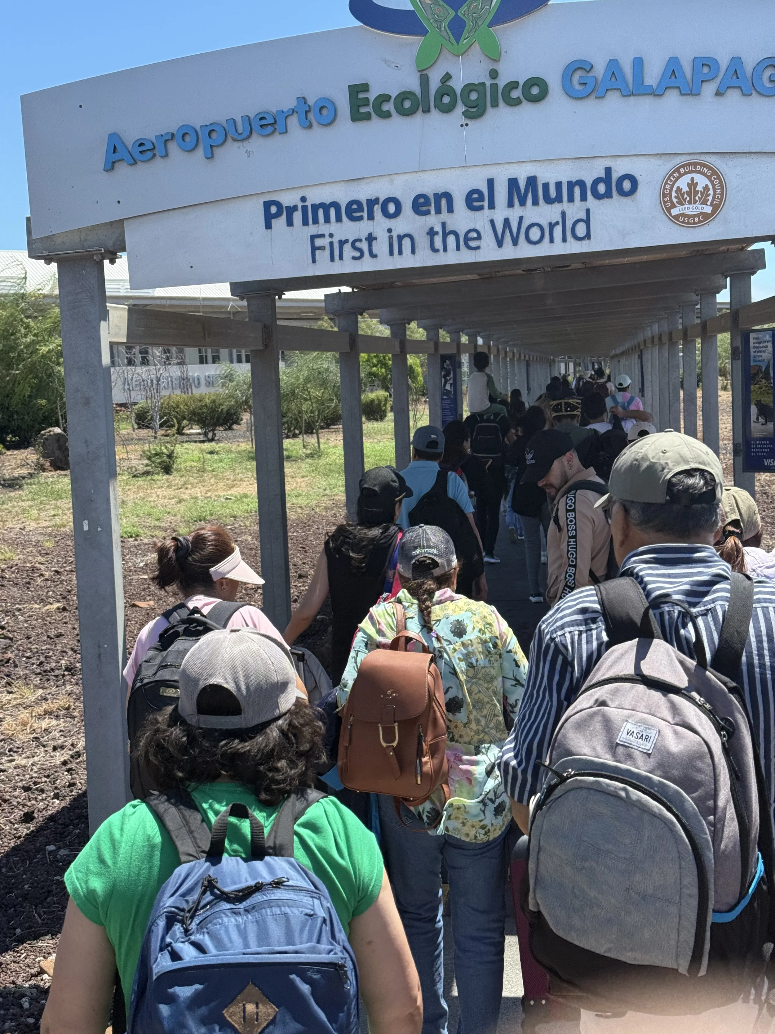 We took a two hour plane ride from the mainland of Ecuador to Blatra. The airport on this island is the gateway to the Galápagos Islands. It is the world’s first ecological airport, designed with bioclimatic architecture and a focus on sustainability. The airport is the only structure on the island. There are no other buildings or people living on the island.