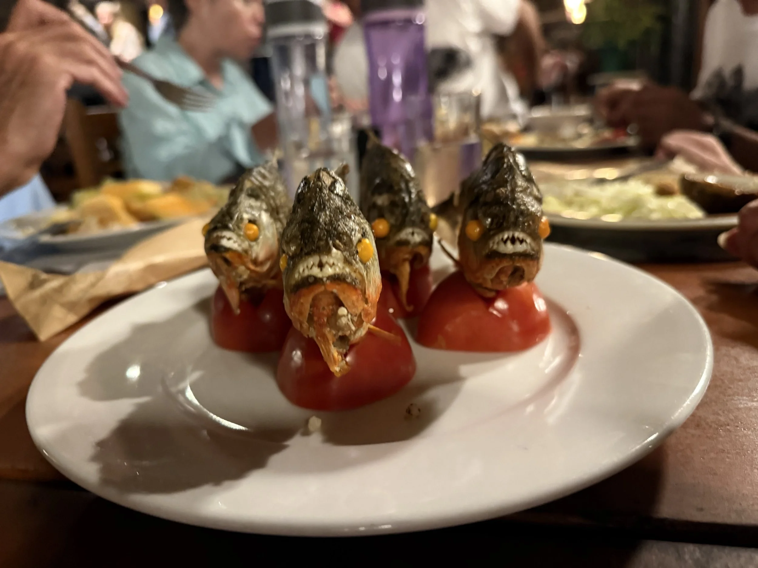 The chef at the lodge cooked our piranhas and did a great job on the presentation!