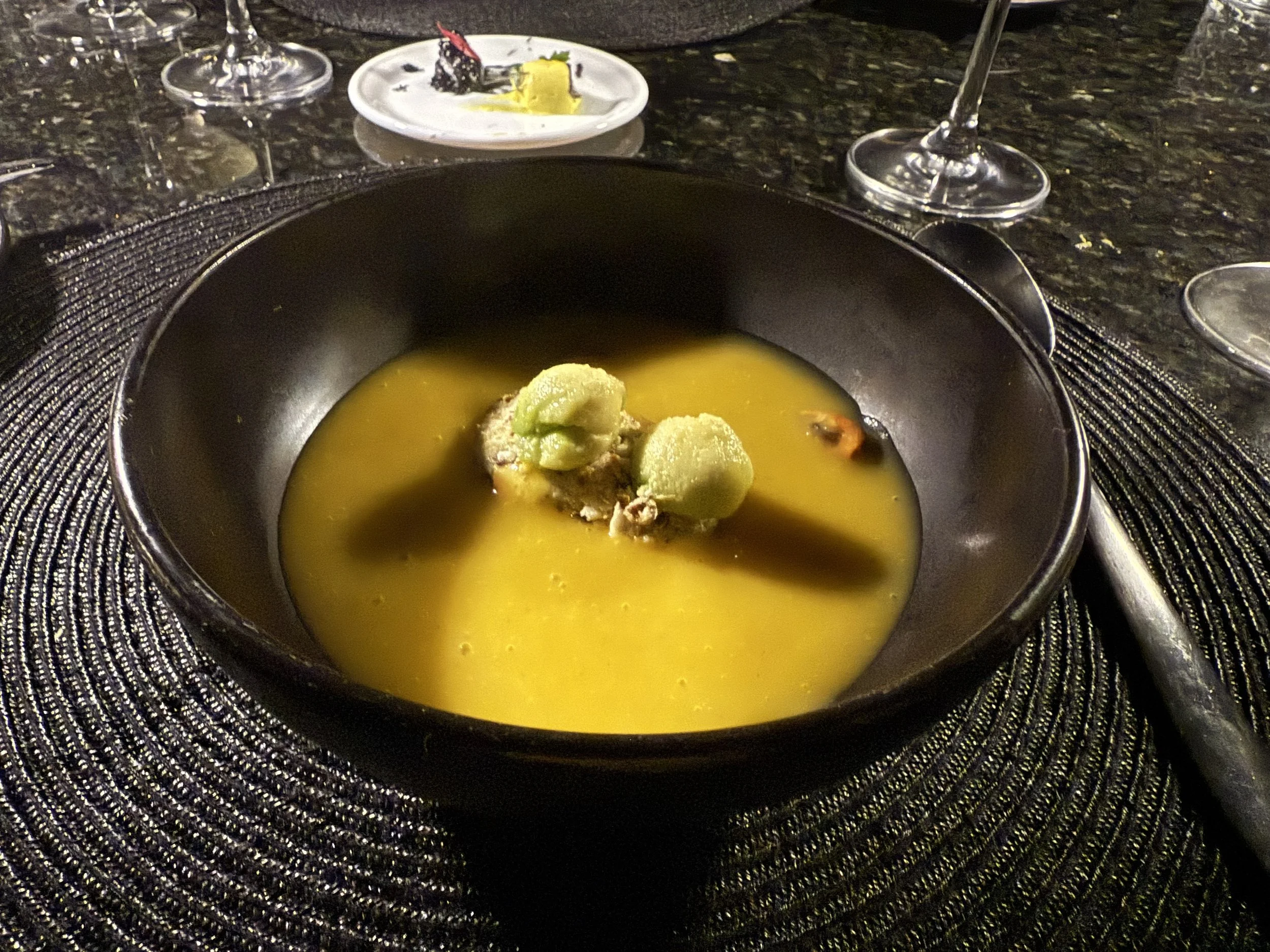 For dinner tonight, we went to a restaraunt located in a lava tube called the Lava Cafe. We were served a five course meal of Ecuadorian foods (locally sourced) paired with Ecuadorian wine. The wines we had were from a winery called Armenia, which is Spanish for “harmony”. The food was delishous and paired very well with the wines. It was a great experience to dine in a cave and have such good food!