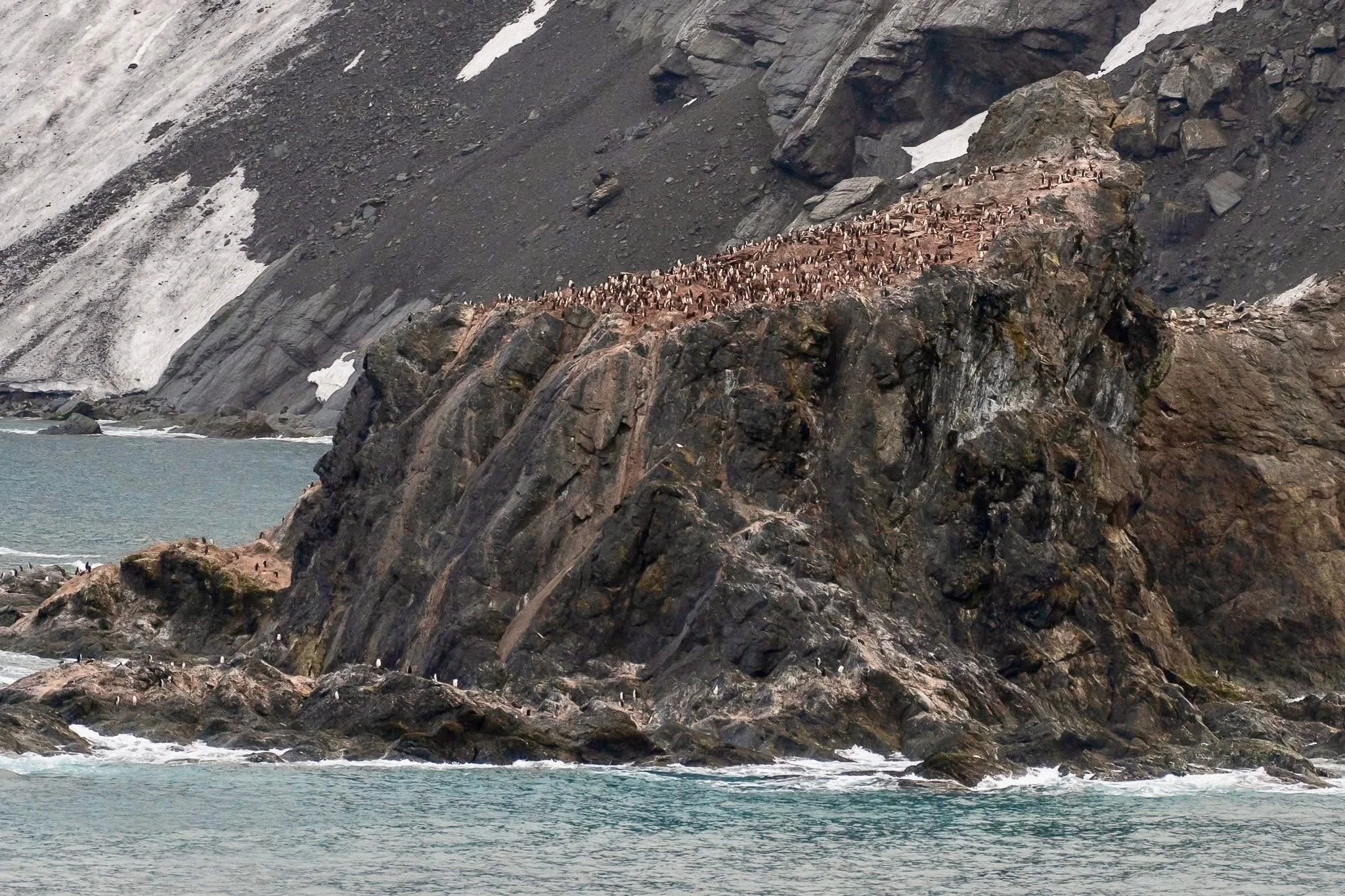 This is the area where the chin-strap penguins nest. There are about 25,000 pairs nesting here. The numbers on these penguins are in a decline.