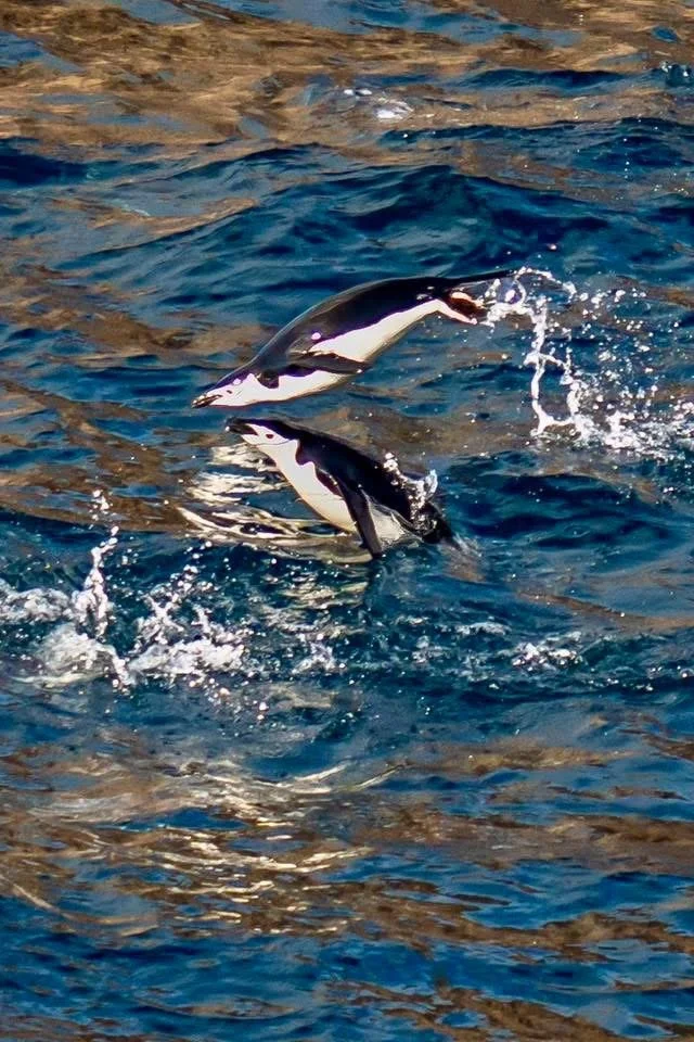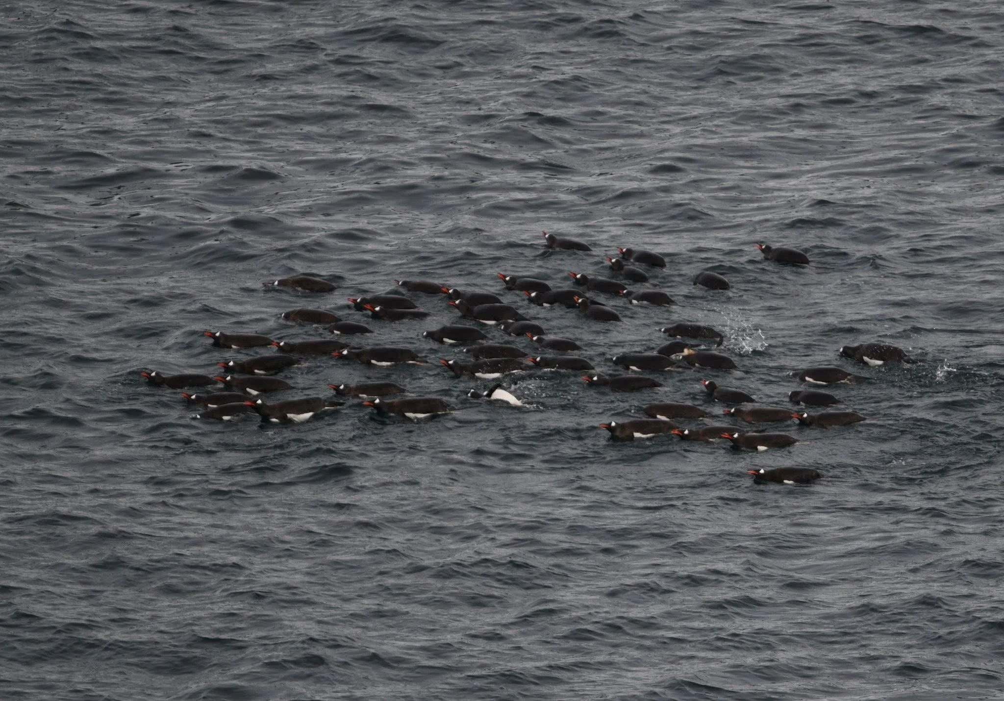 As we continued along the passage, we continued to see penguins. A group of penguins is called a waddle. We saw many waddles of penguins swimming past the ship.
