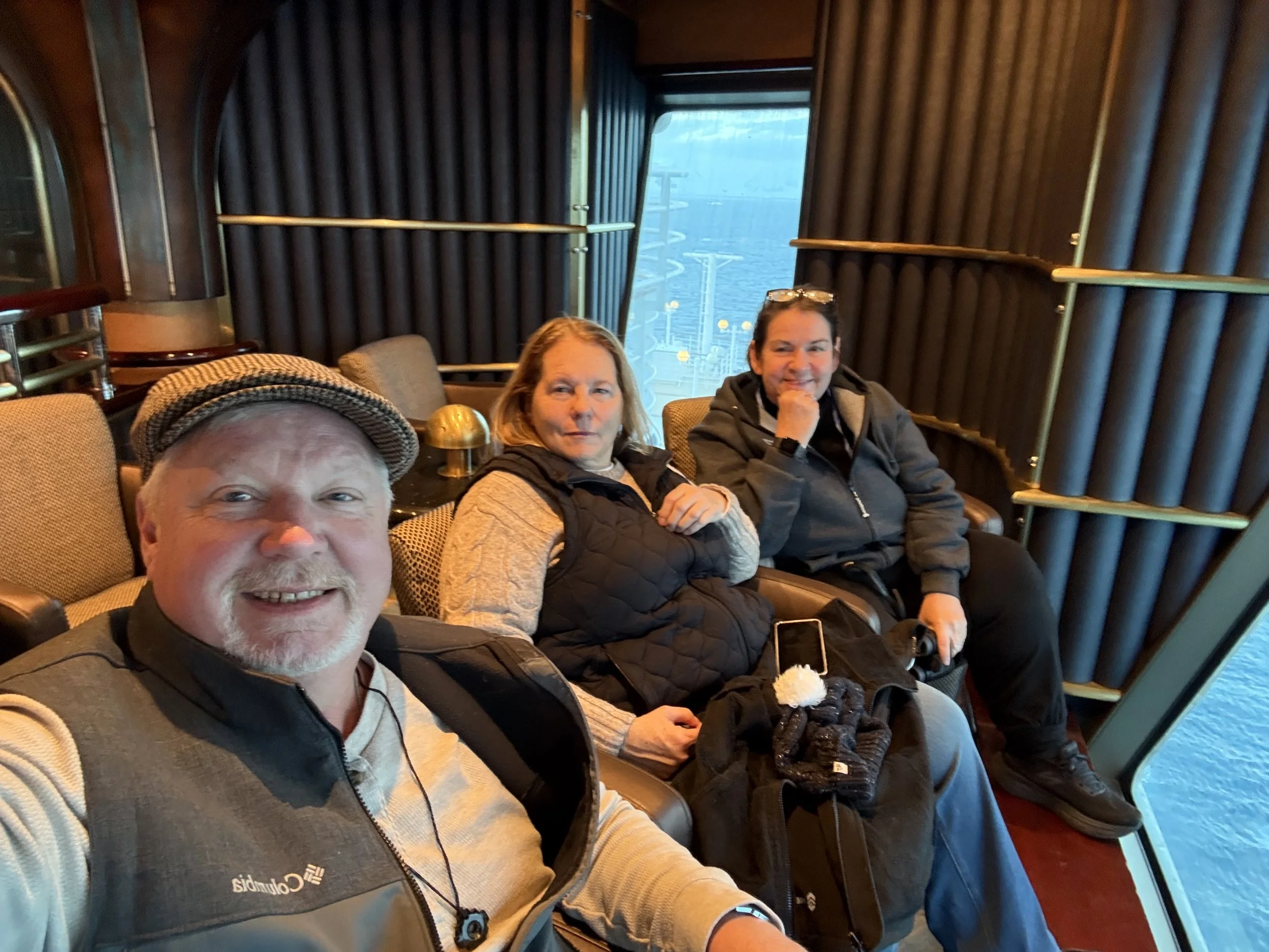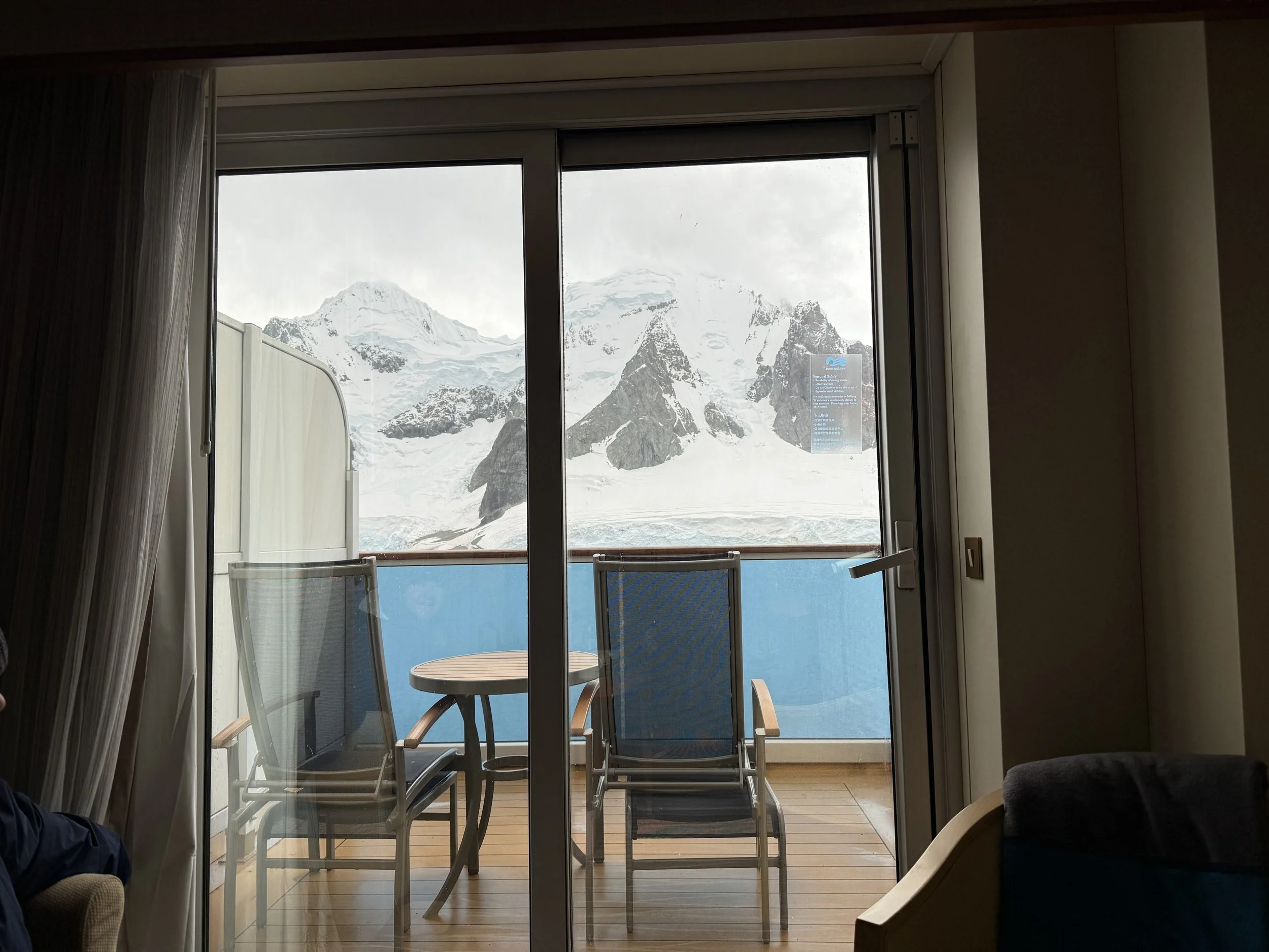 The skys started to clear a bit and really made the snow capped mountains pop. We headed up to the Skywalker lounge on the 18th floor in the afternoon of the ship. It gave us some great views.