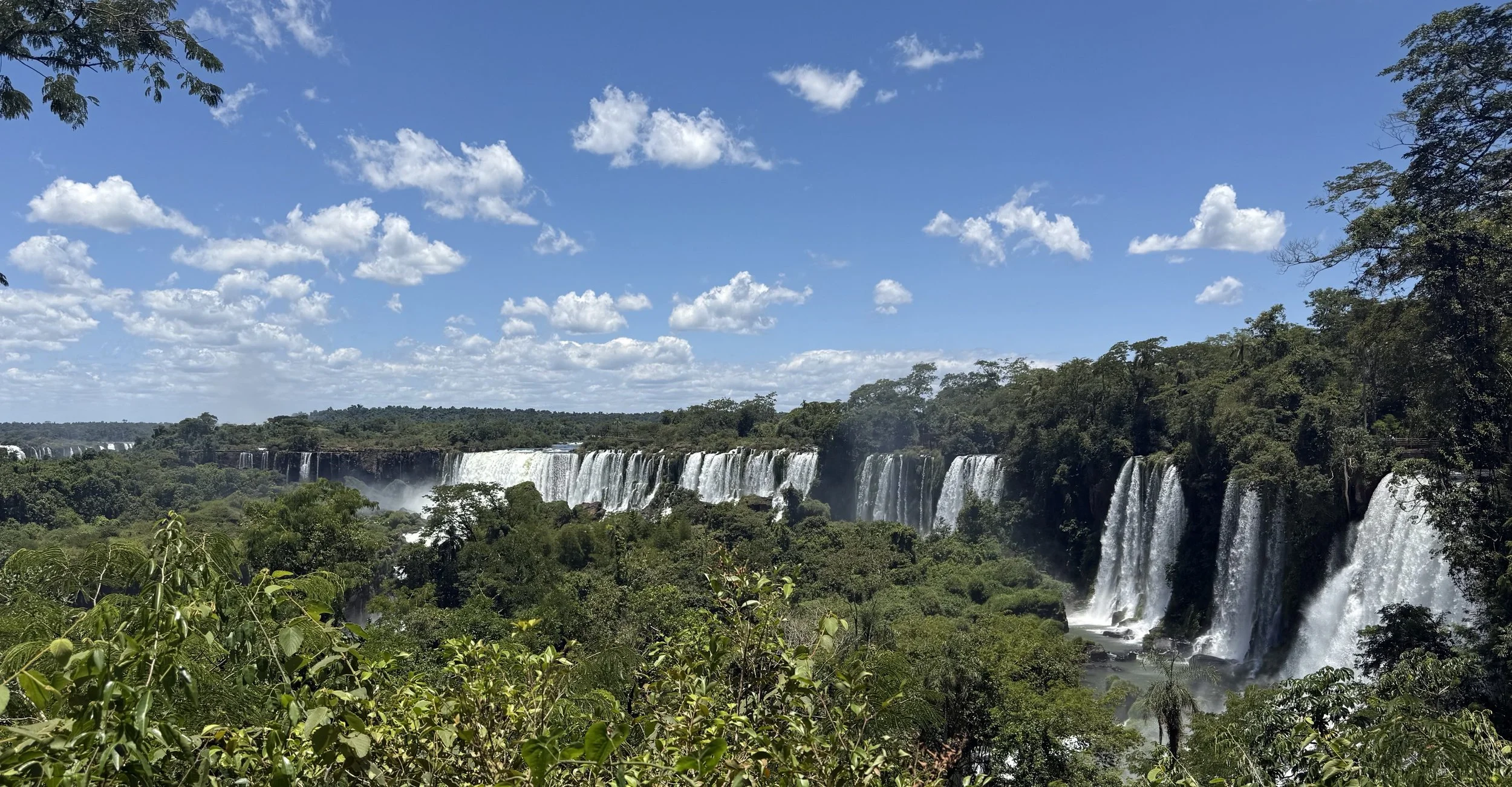 Today our guide took us to Argentina’s Iguazu National Park to see one the world’s largest waterfalls. Iguazu falls is the world’s largest waterfall system for a length of about 2.7 miles. The system consists of 275 individual waterfalls. The other waterfalls it compares to are Niagara Falls which has less length, but more volume of water per second and Victoria Falls which has the largest vertical drop of a water fall.