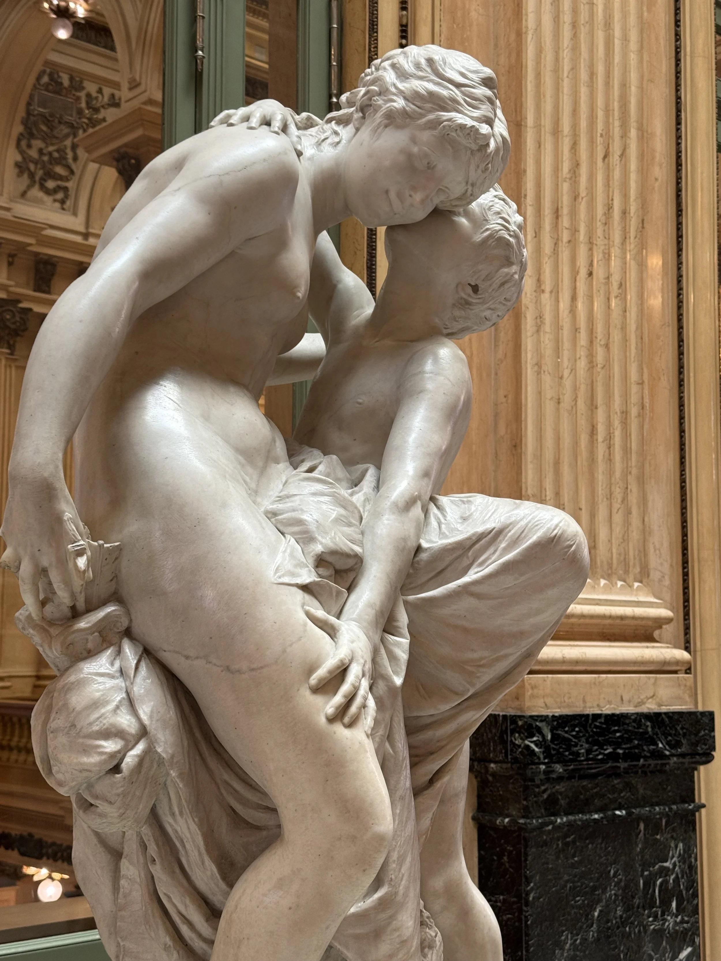 One of the statues in the opera house depicts a boy telling a secret to a woman. Our guide said it was Aphrodite and Cupid because of the arrows in the sack. But there is no proof that this is the case. However, an interesting note is that the woman is missing a finger on her right hand. Since it was carved from a single piece of stone, they did not want to fix it and left it as it was.