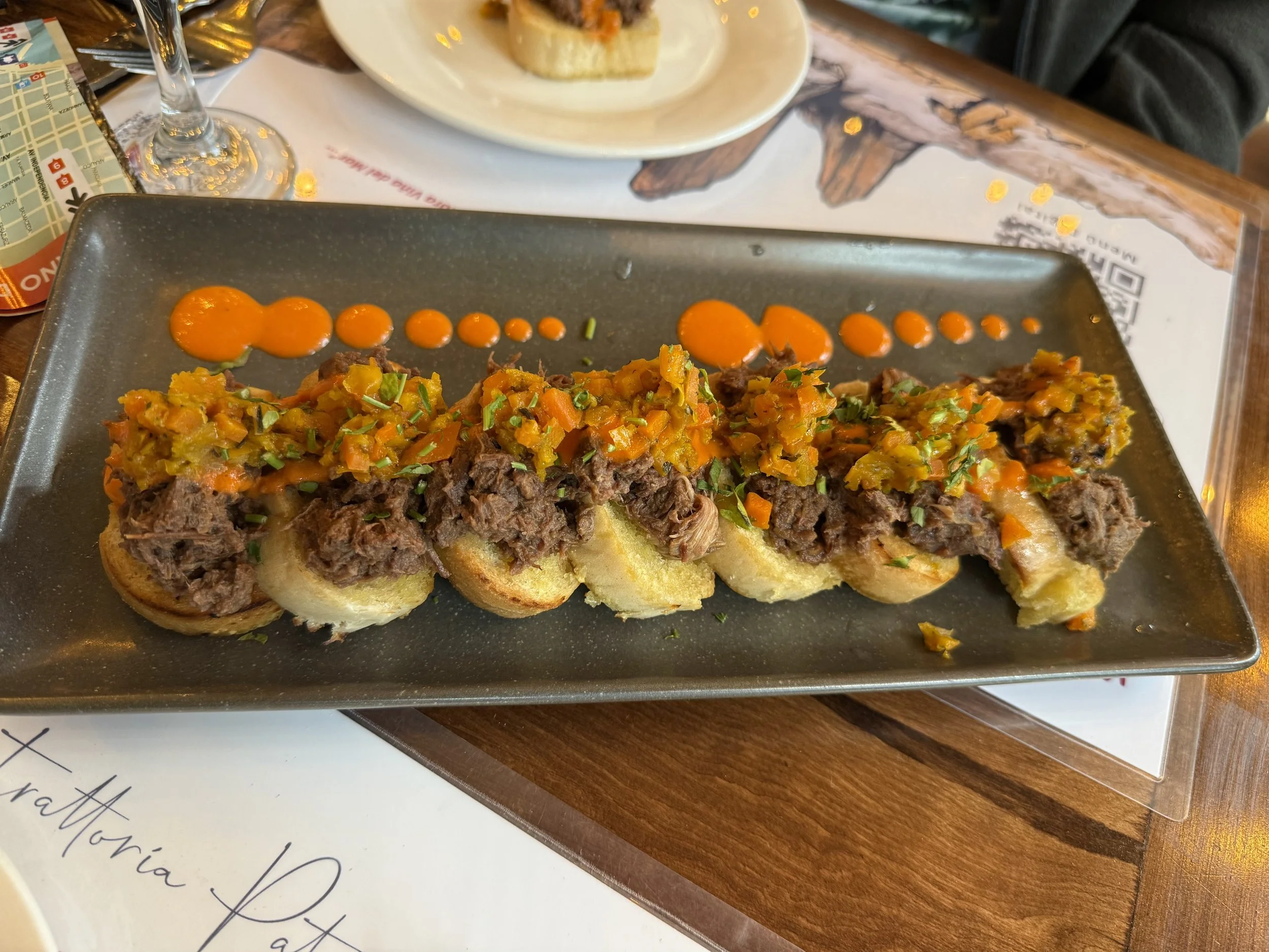 The lamb was slowly cooking over an open fire. . They had started cooking it 6 hours earlier. All the food was served tapas style, We had king crab in the shell, river trout ceviche, and Choripan. After drinks an appetizers, she moved us to an out building where she ad tables set up. There was more food inside. We had potatoes, Grilled carrots, salad and of coarse, we got to eat the lamb. The food Was amazing. Chilean wine was also served with the food.