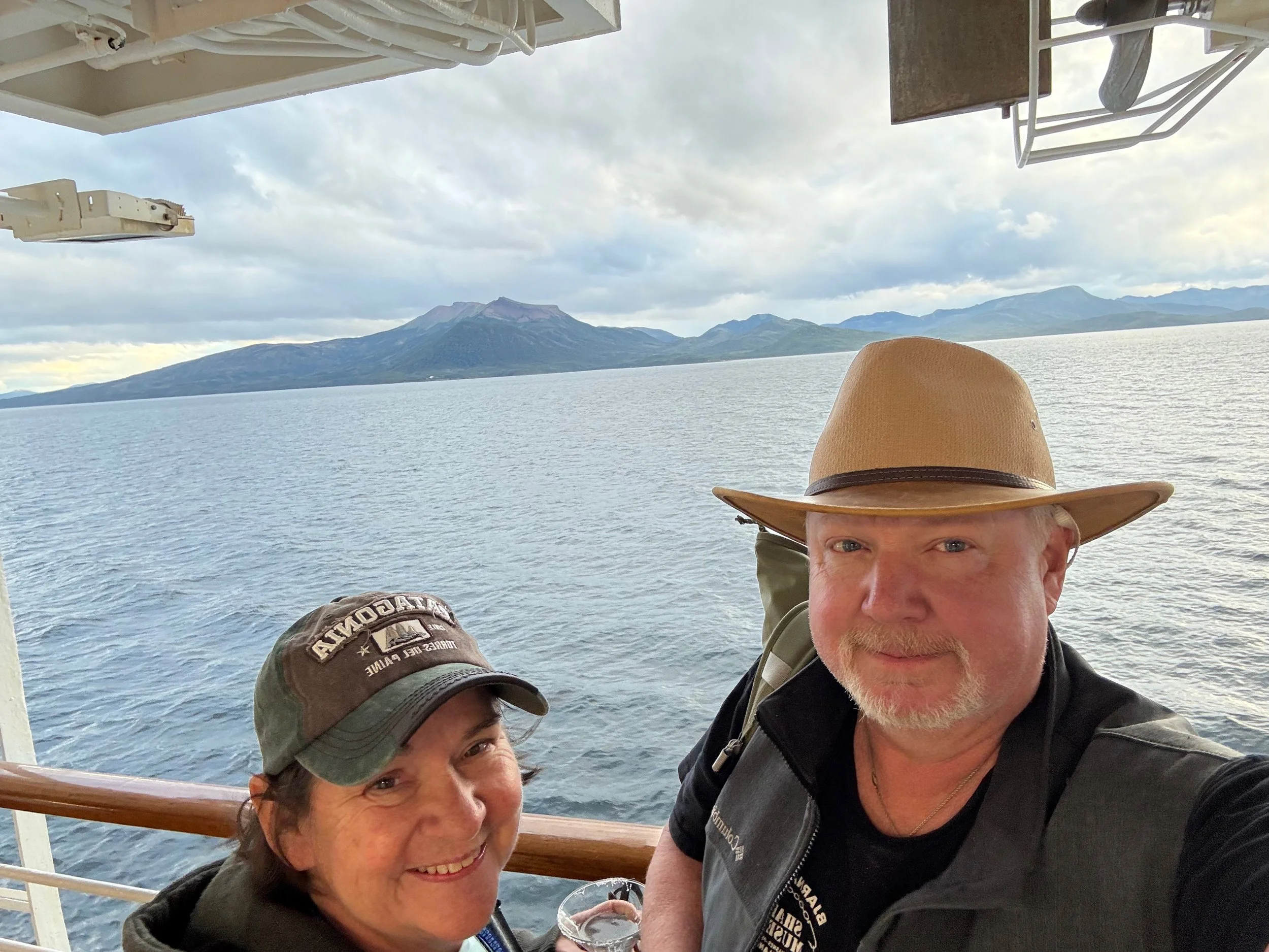 Enjoying our cocktails as we pass the Magellan Strait.