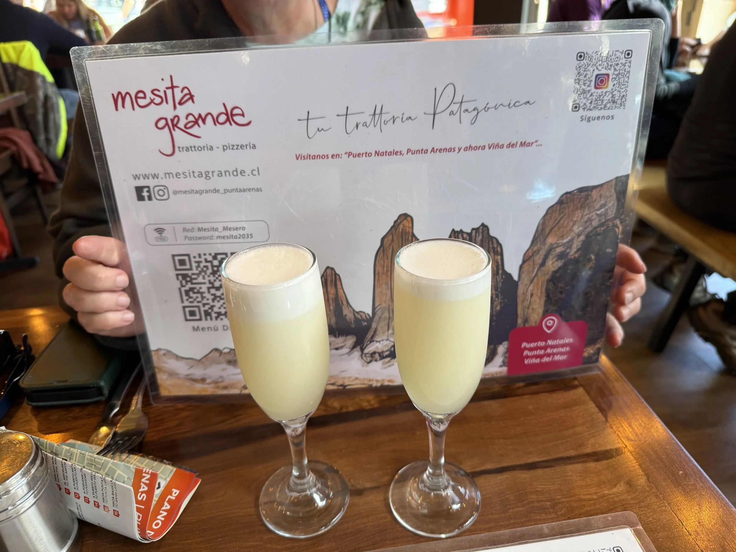 It was a short walk into town. We started our tour in the Plaza de Arms. This is where the statue of Ferdinand Magellan. There was a celebration in the plaza with dancers dressed in traditional clothing. We bought a few souvenirs and I got a postcard for Grace. They do not sell postcard stamps in the shops, so we had to find the post office. The town is small, so it did not take us long. We had some extra time, so we found a small restaurant called Mesita Grande. We had some Pisco Sours and ordered Pancitos de Guanaco,( a local Patagonian dish with rolls and shredded meats. The meat in it was most likely Lama.