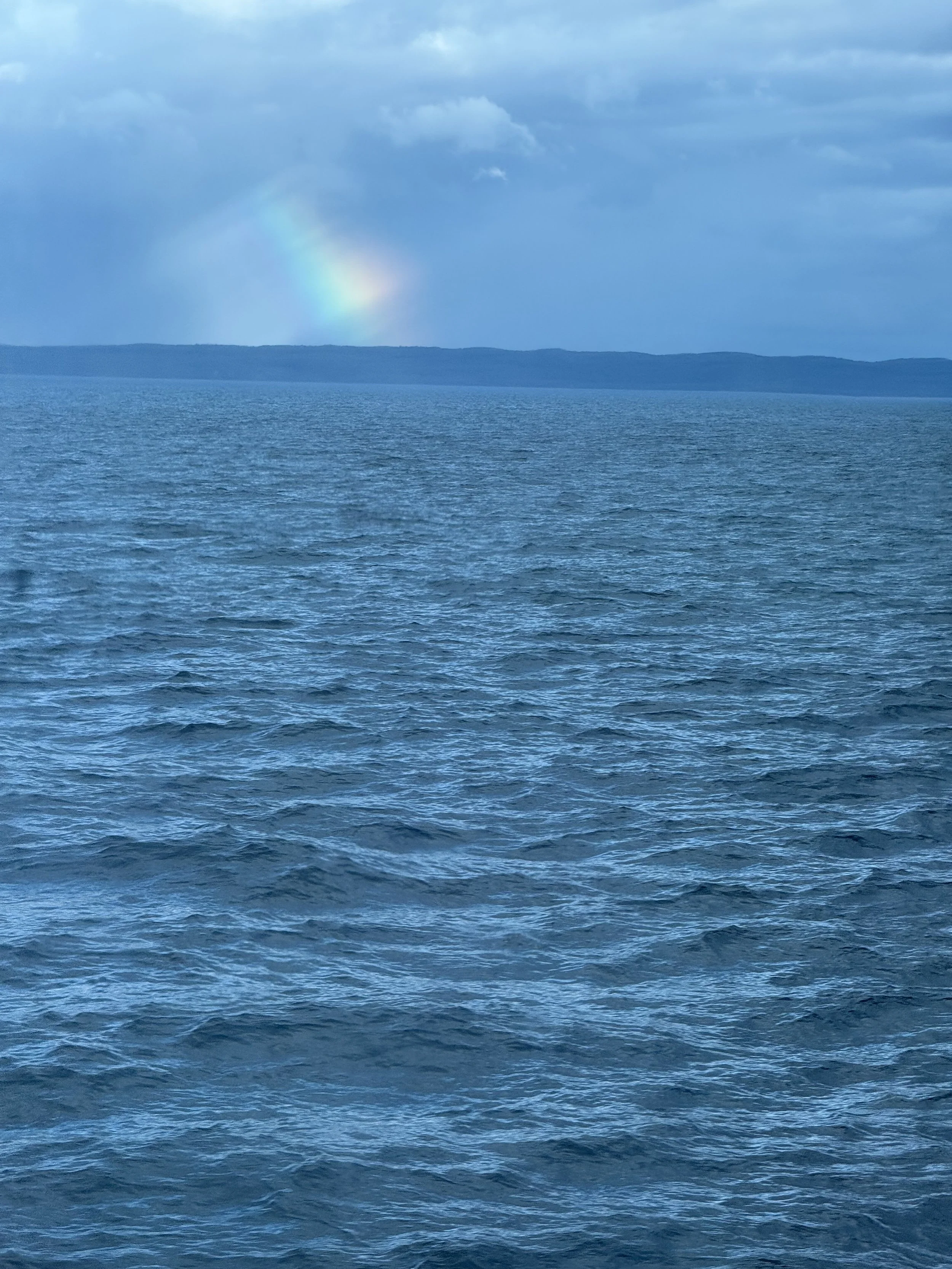 We were soon underway passing through the Strait’s of Magellan. The seas were fairly calm. I even got a shot at a rainbow as we passed.
