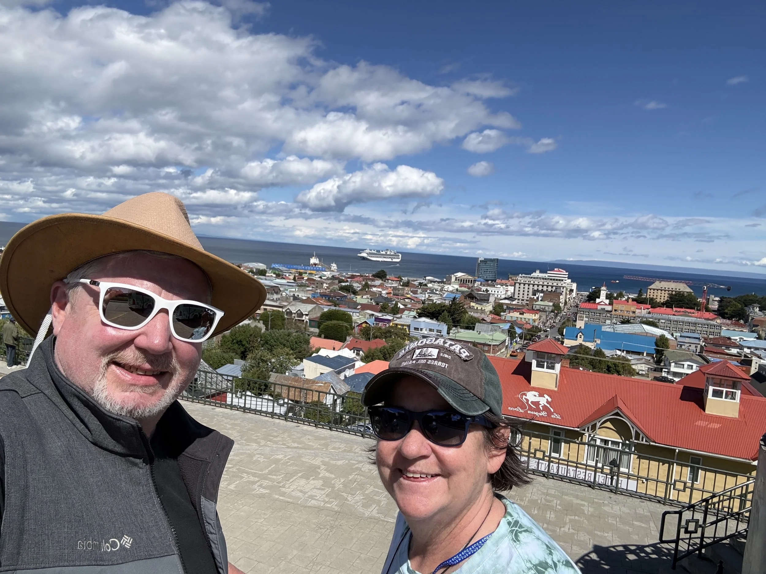 We had signed up to do a Princess food tasting excursion to try authentic Patagonia Asado. The excursion started with a short tour of the town in a shuttle bus. There were only 10 people on this tour which made this great. We saw many sculptures and monuments that are important ot he area as well as an upper view of the city (with our ship in the background).