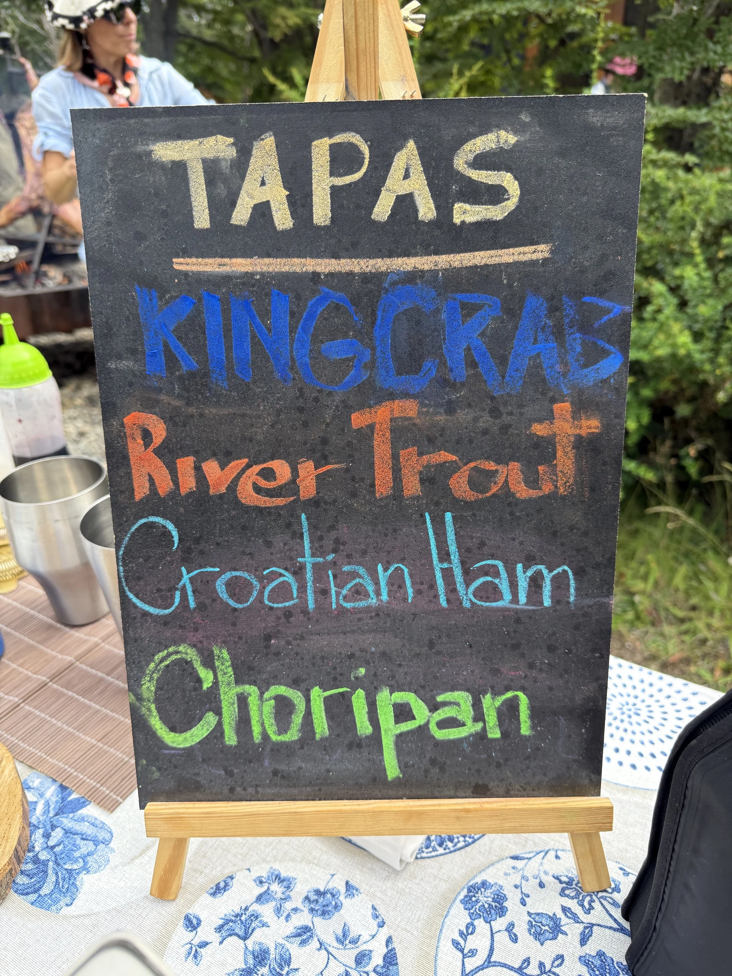 As an appetizer, Tapas was served. We had king crab in the shell, river trout ceviche, Croatian Ham and Choripan.