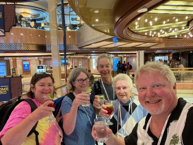 Once on the ship, we gathered with some of our family members on the trip in the bar and had a toast to the trip.