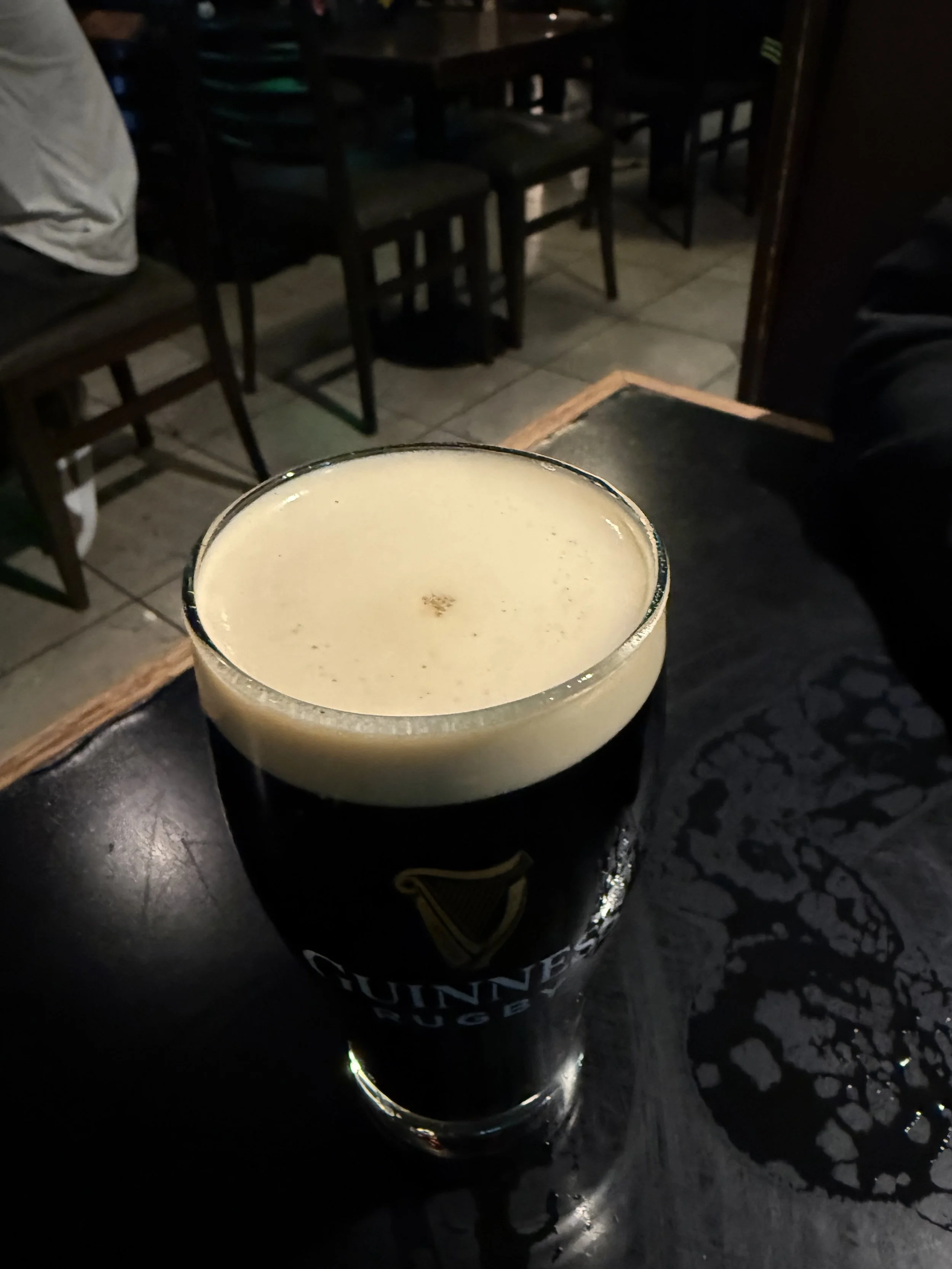 This is far from the creamy sweet taste of Guinness found in Ireland. It is much closer to the bitter Guinness found in the states. But at least the Guinness in the states had nitrogen bubbles and a thick head.