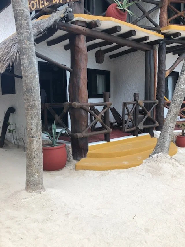 Once we got to Holbox, we found that there are no cars, only gulf carts. We hired a taxi driver driving a golf cart to drive us to our hotel, the La Palapa Hotel.