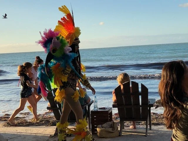 Actors walking down the beach past our hotel on their way to Carnival celebrations.