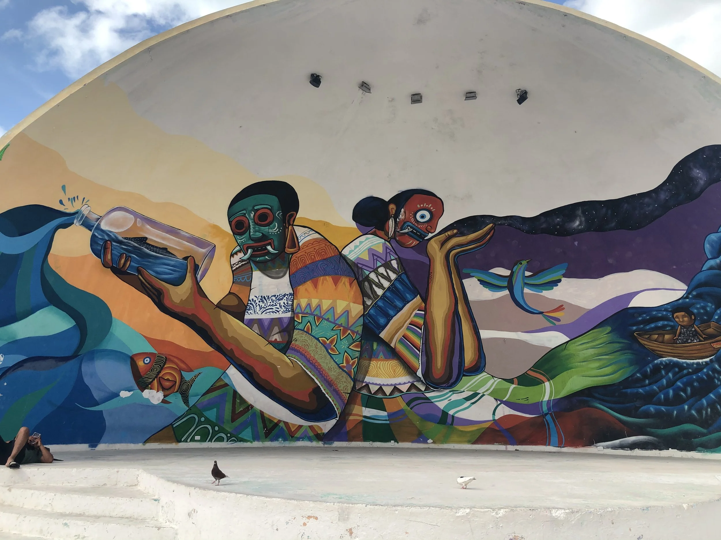 Headed to the beach and came across more wall art on the concrete structures in the water.