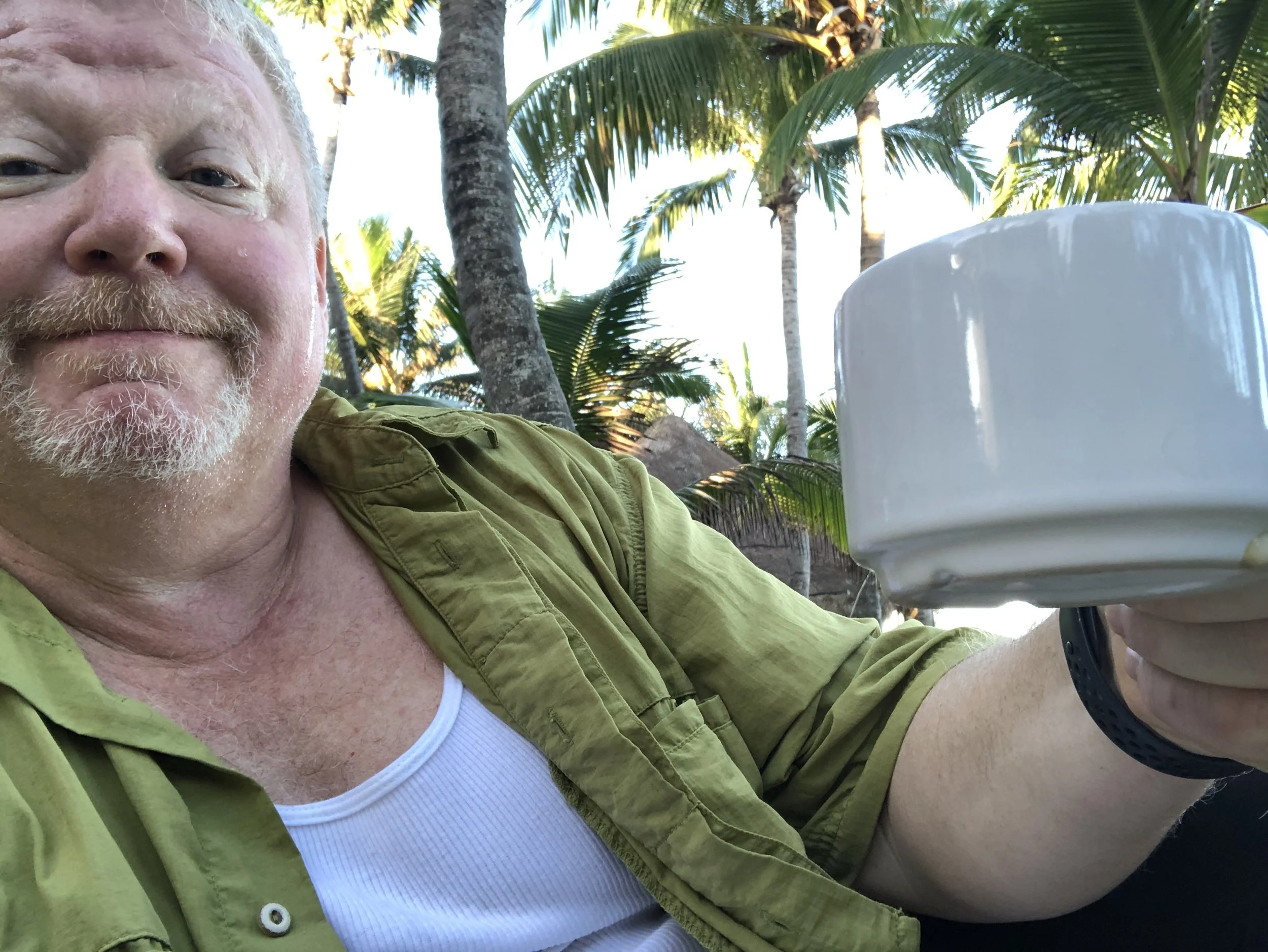 I woke up early and enjoyed a nice cup of coffee while sitting on one of the chase lounge chairs at our hotel. It was a beautiful morning. Sandy slept in, so I had some quiet time to read my book and drink my coffee.