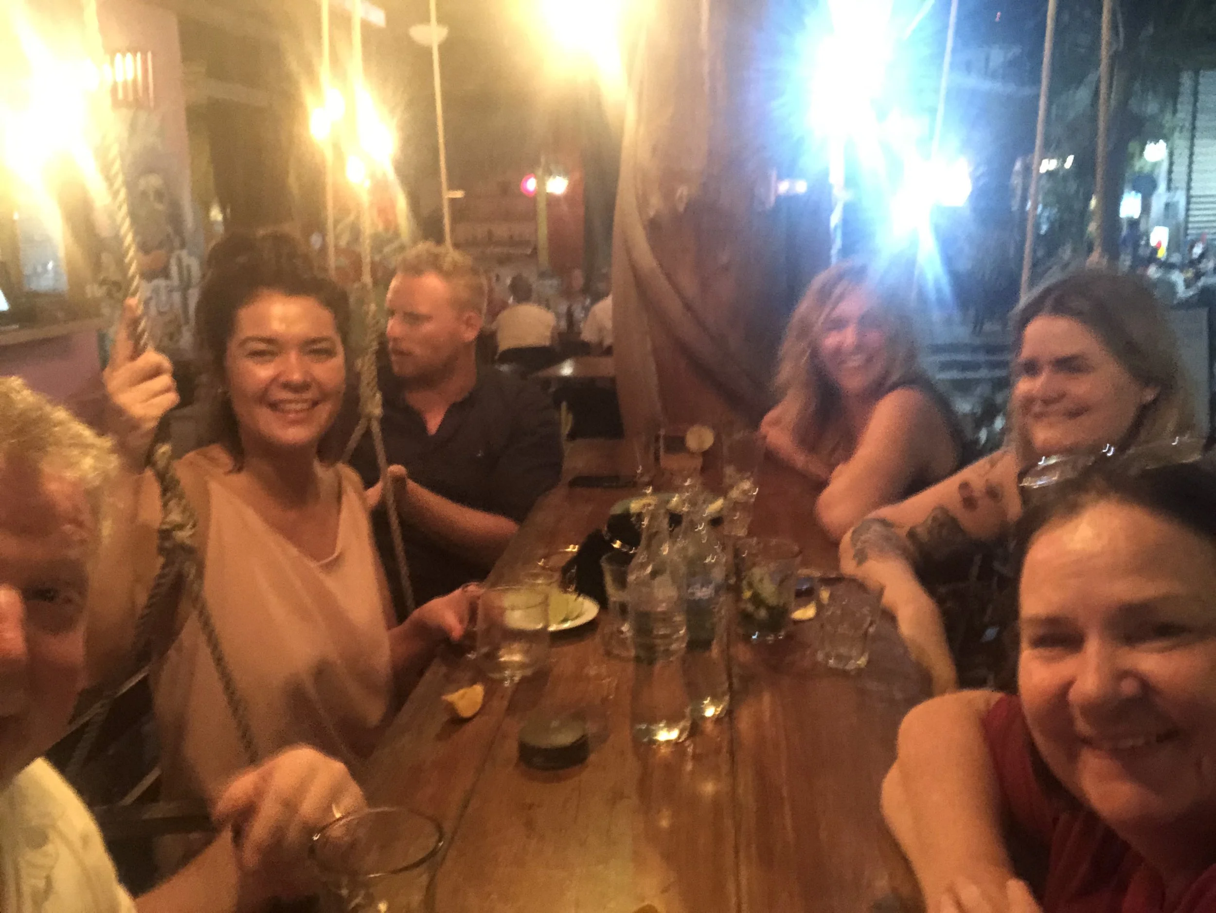 Later, we found a bar with swings on the front of the Coquitos Bar. Here we shared our table a fun group of people from Norway.
