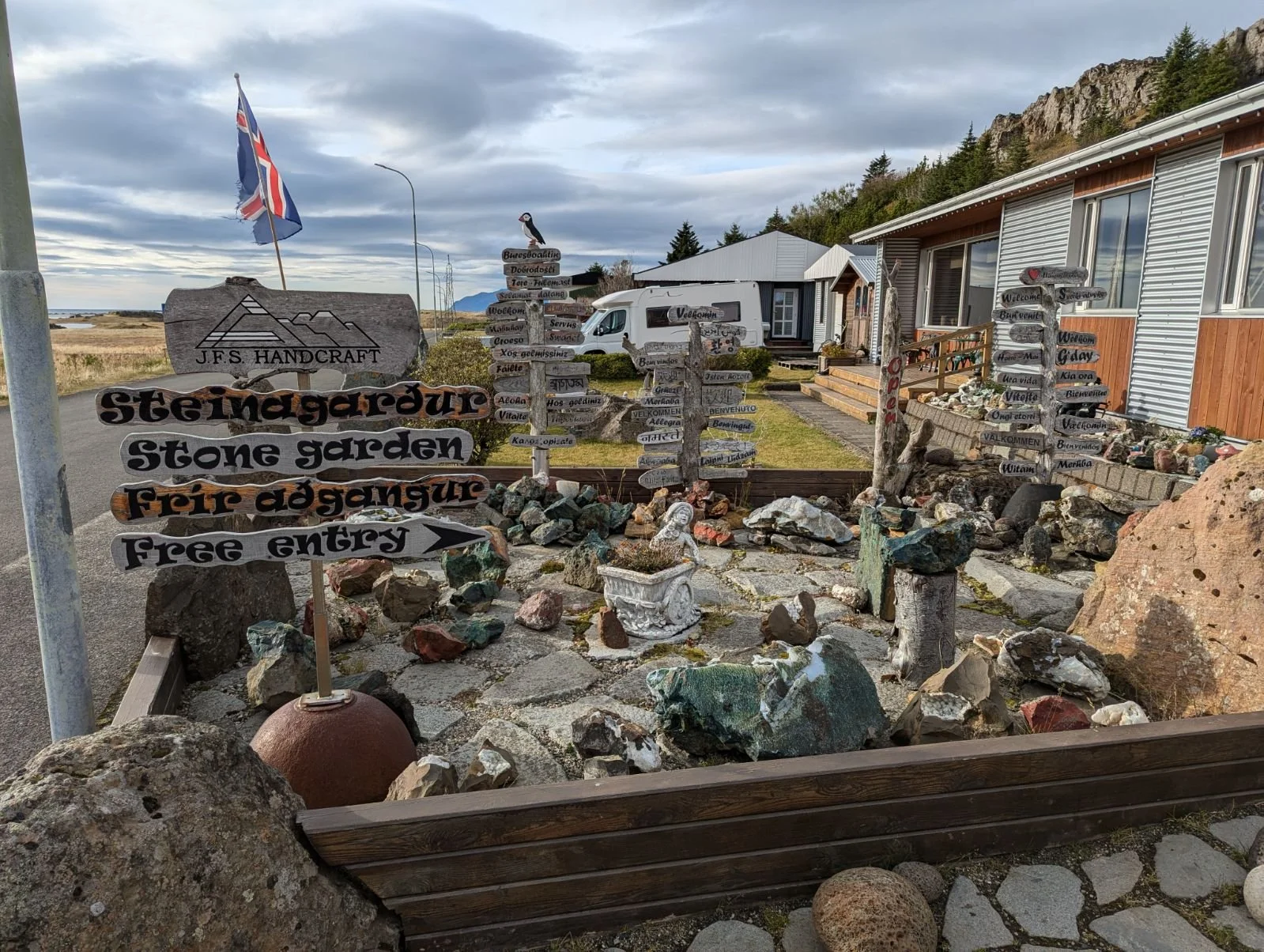 Djupavogi is a small town with not many stores. Wendell found a small craft shop that we checked out. J.F.S Handicraft. The owner, Jon Fridrik Sigursson, is a retired fisherman that collected rocks for the last 15 years. He is a very proud man and insisted on showing us his collection of rocks and his studio where he hand made everything. It was a fun unexpected stop.