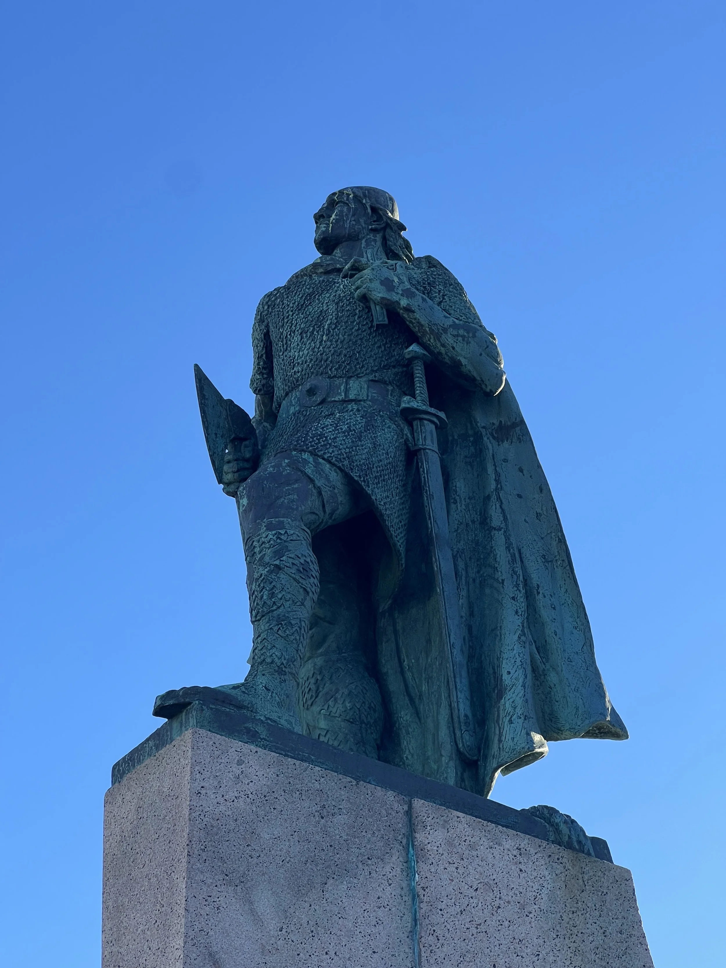 This bronze statue was a gift from the United States to the people of Iceland in 1930. It is located in front of Hallgrimskirka.
