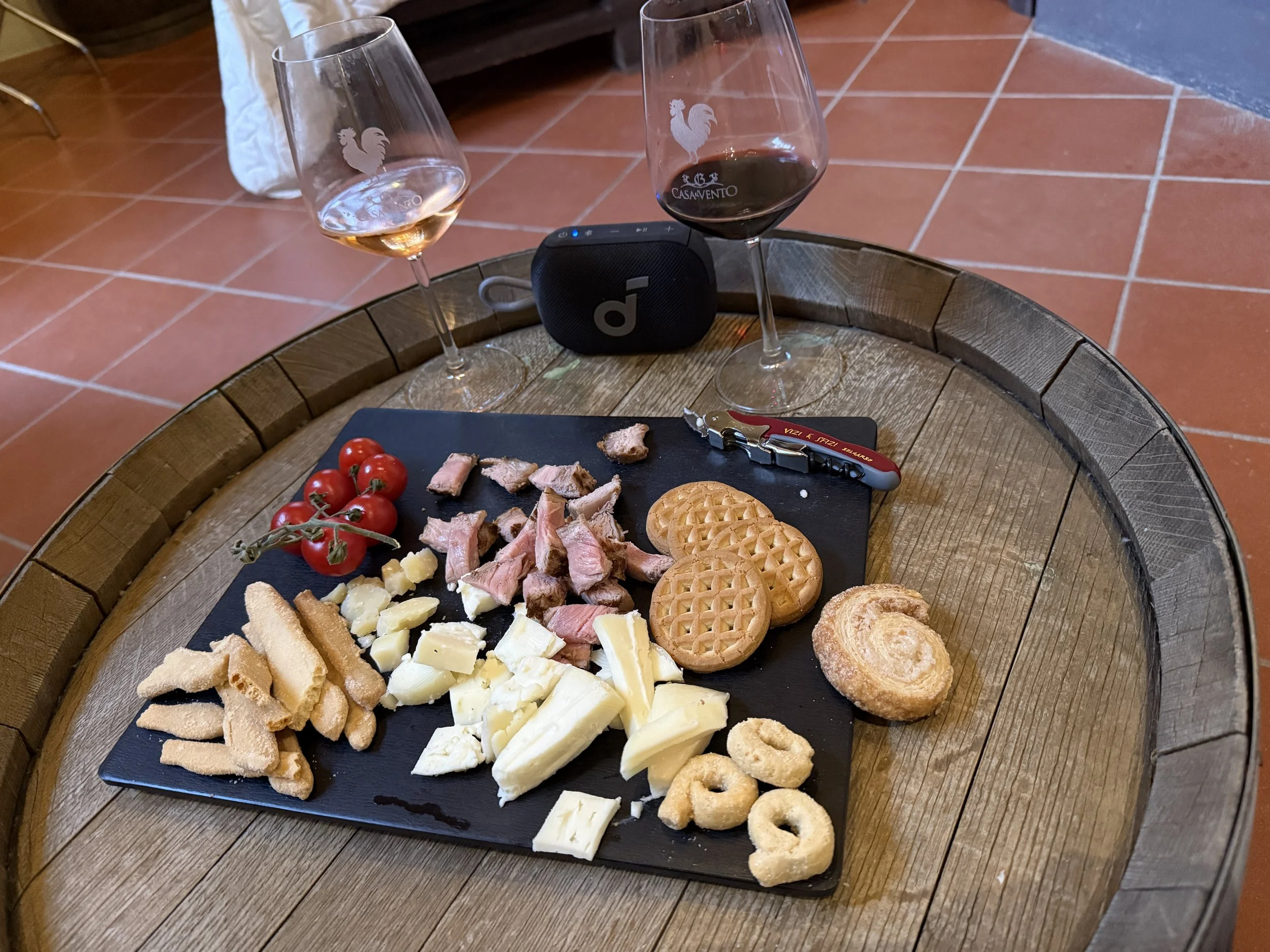 It was a long day, so we headed back to our villa and relaxed with some wine we picked up and a small charcuturie board I made with cheeses we had.