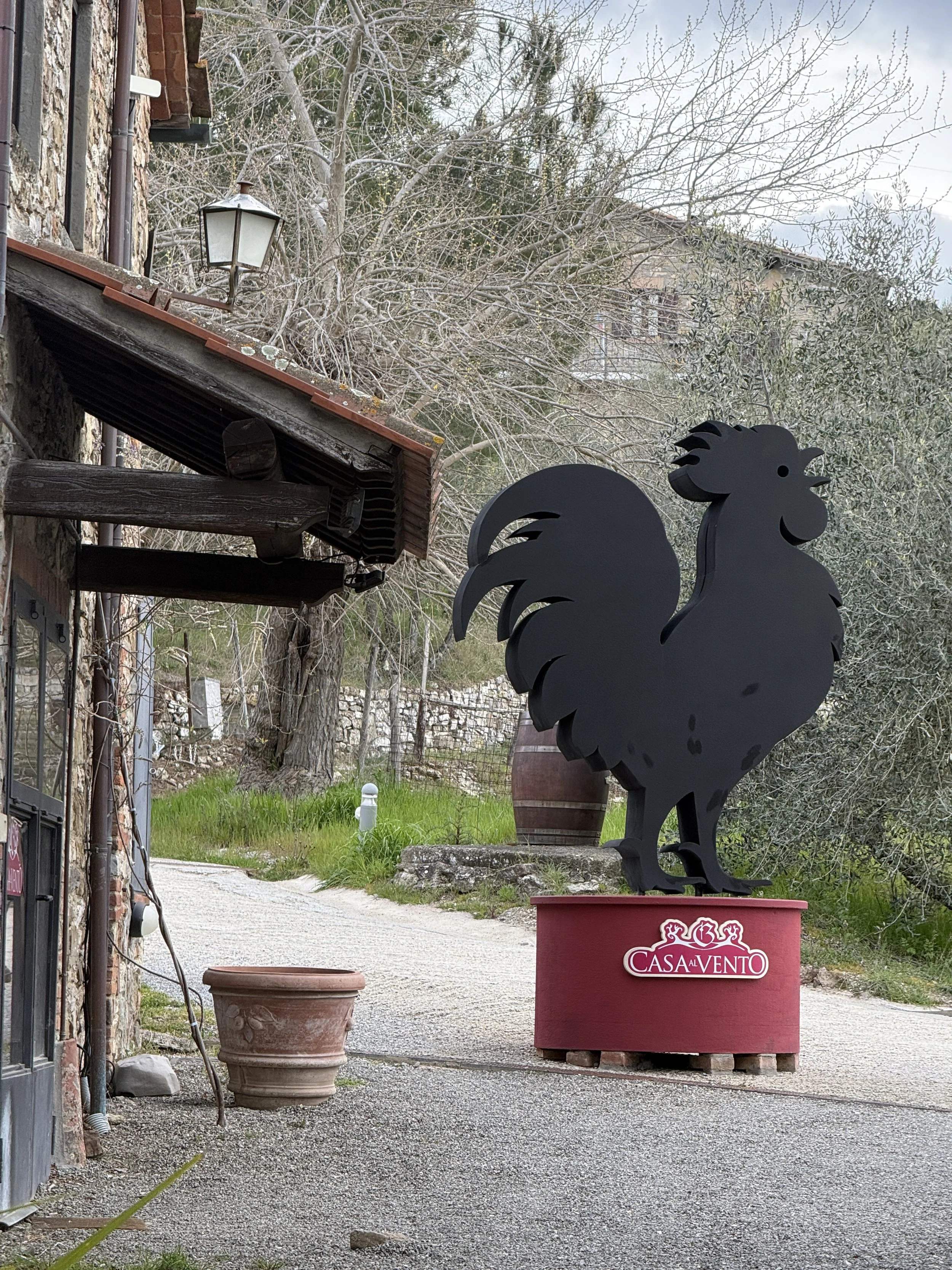 We are currently in the heart of the Chianti Classico Region. This is different from the Chianti Region we were in at San Gimimigano. The Chianti Classico Region is the original Chianti Region bounded by Florence to the north and Sienna to the south. In 1762, the Chianti region was expanded. The original region got the designation “Chianti Classico” and the rest simply Chianti. There are stricter rules used to distinguish the two wine regions. Chianti Classico wines can be identified with a black rooster on the label.