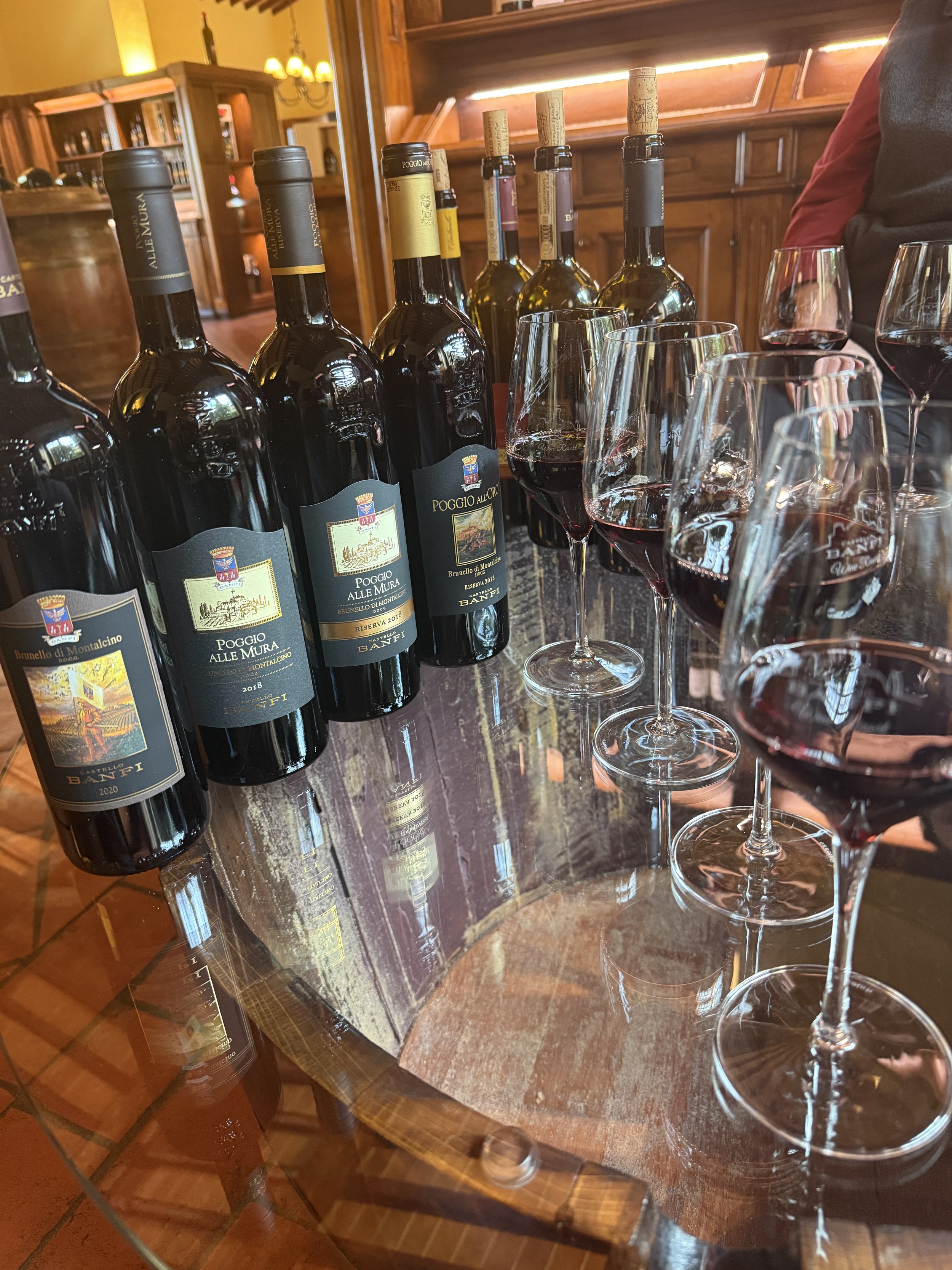 Today we drove out to the Brunello wine region. Jut like the Nobile wine region centered on Montepulciano, Brunello is centered on Montalcino, about 15 miles away.