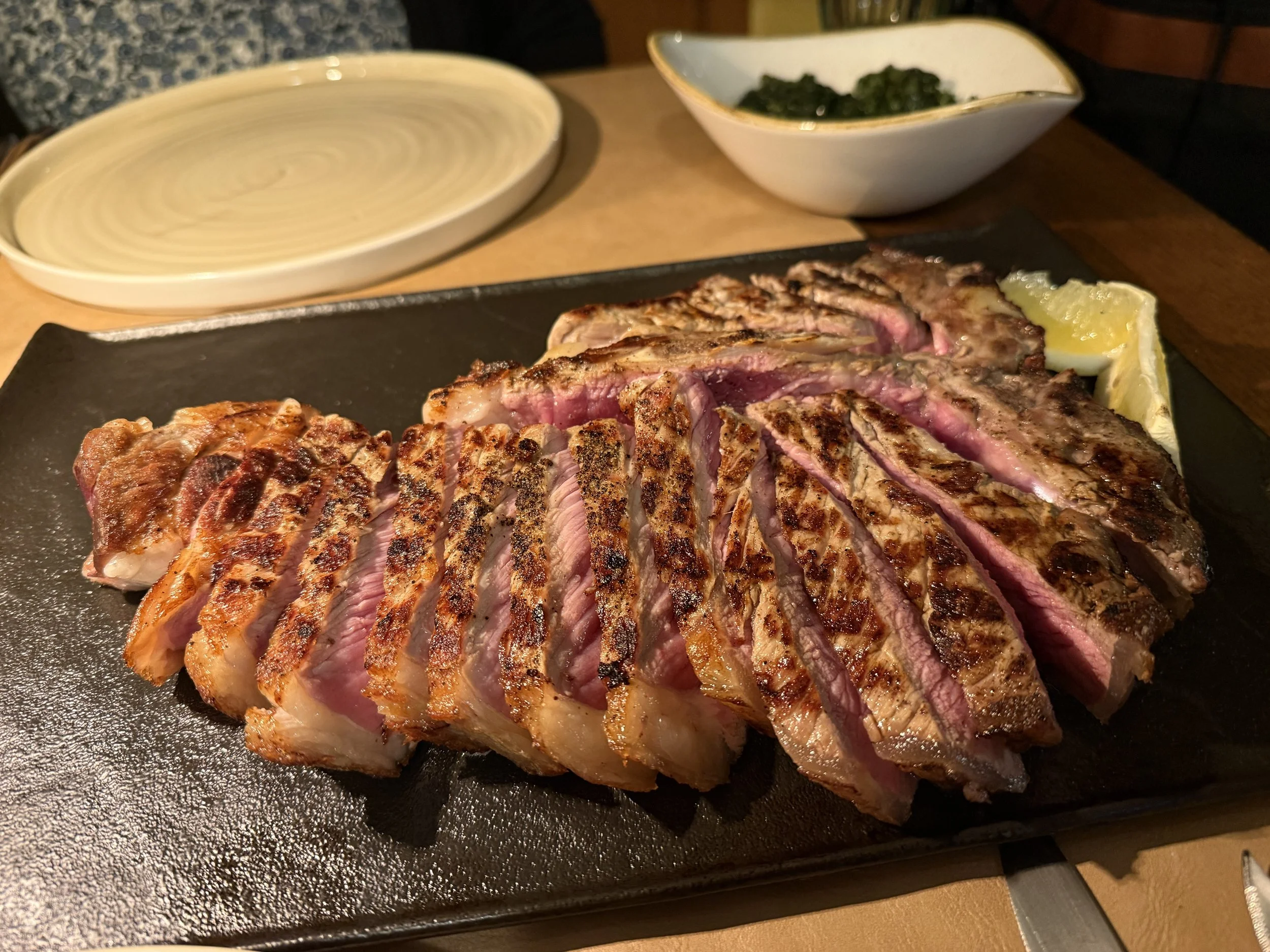 Our steak! It was cooked perfectly, but was more than the two of us could eat.