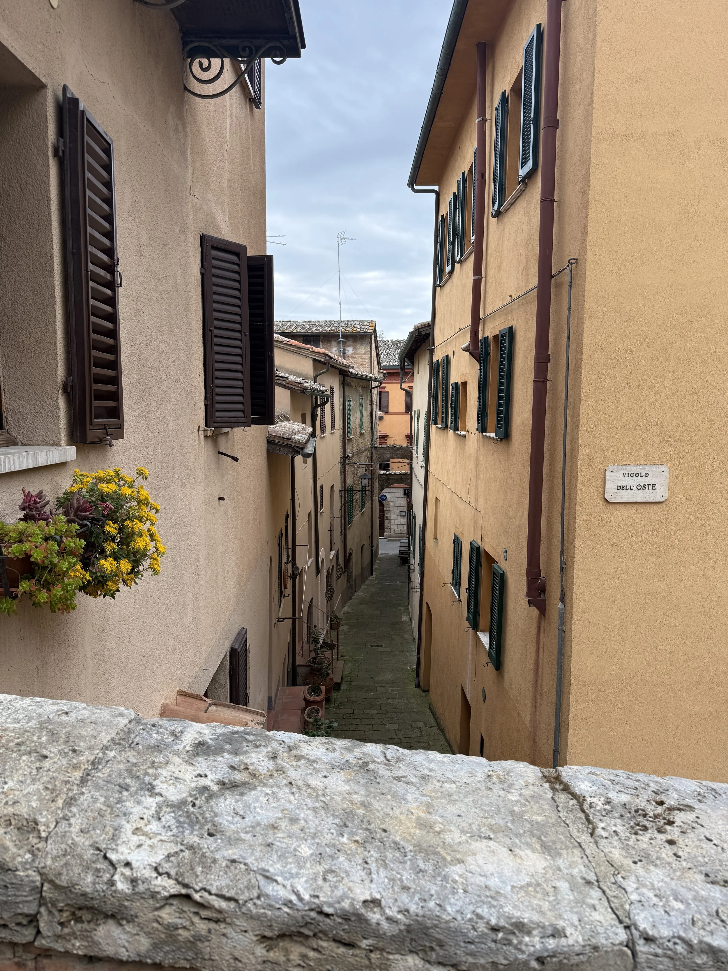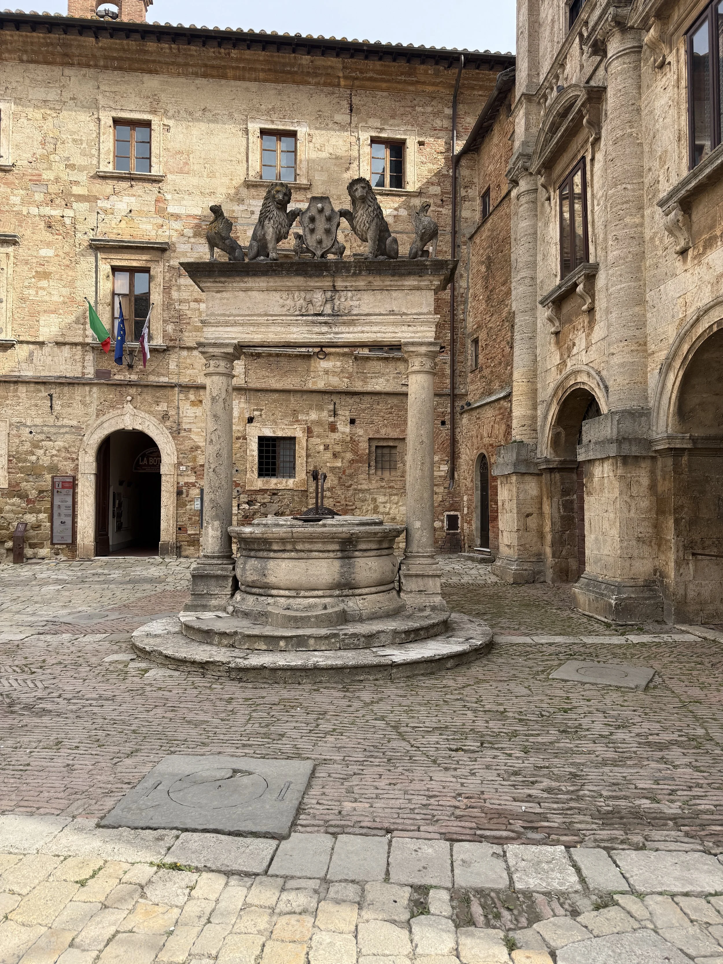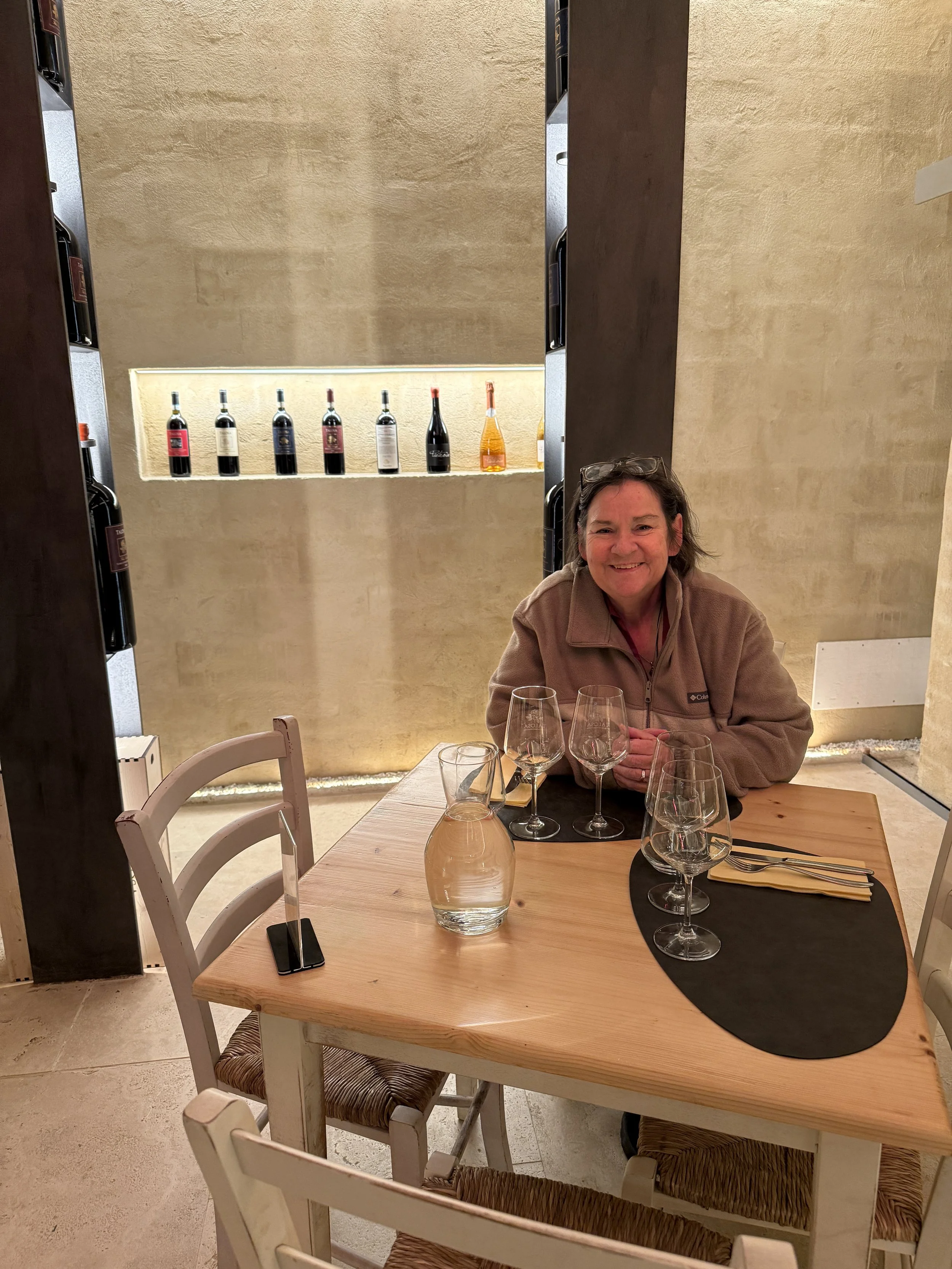 We had a reservation for a wine cellar tour at 11:00 at Cantina Fattoria Della Talosa (Talosa for short). This is a 16th century underground winery located in the heart of Montepulciano, about .3 mile from our Airbnb. It is located beneath two of the city’s oldest buildings, right next to Piazza Grande. The cellars date back to the 1500’s and even have older Etruscan ruins (5th century BC tomb).