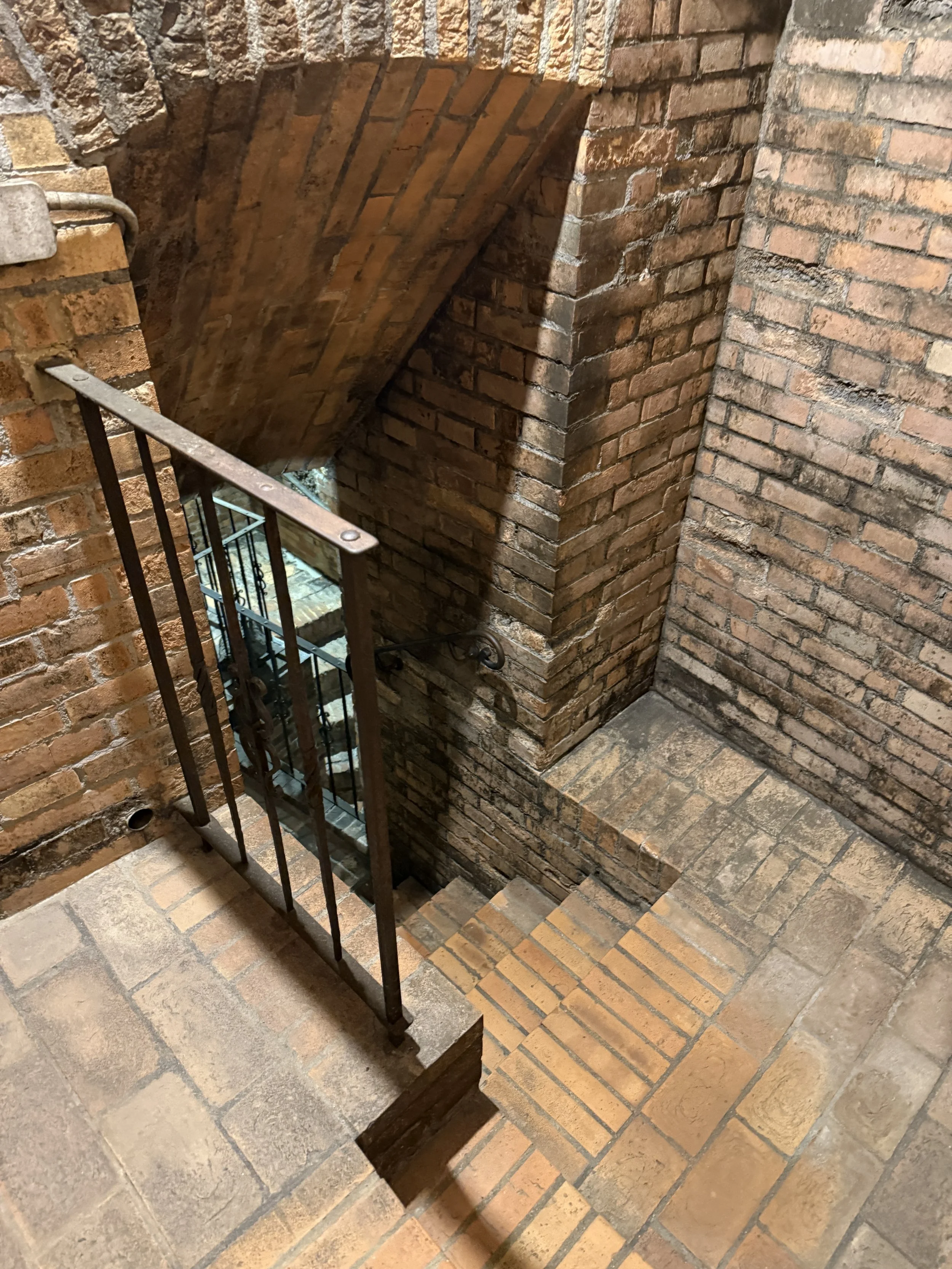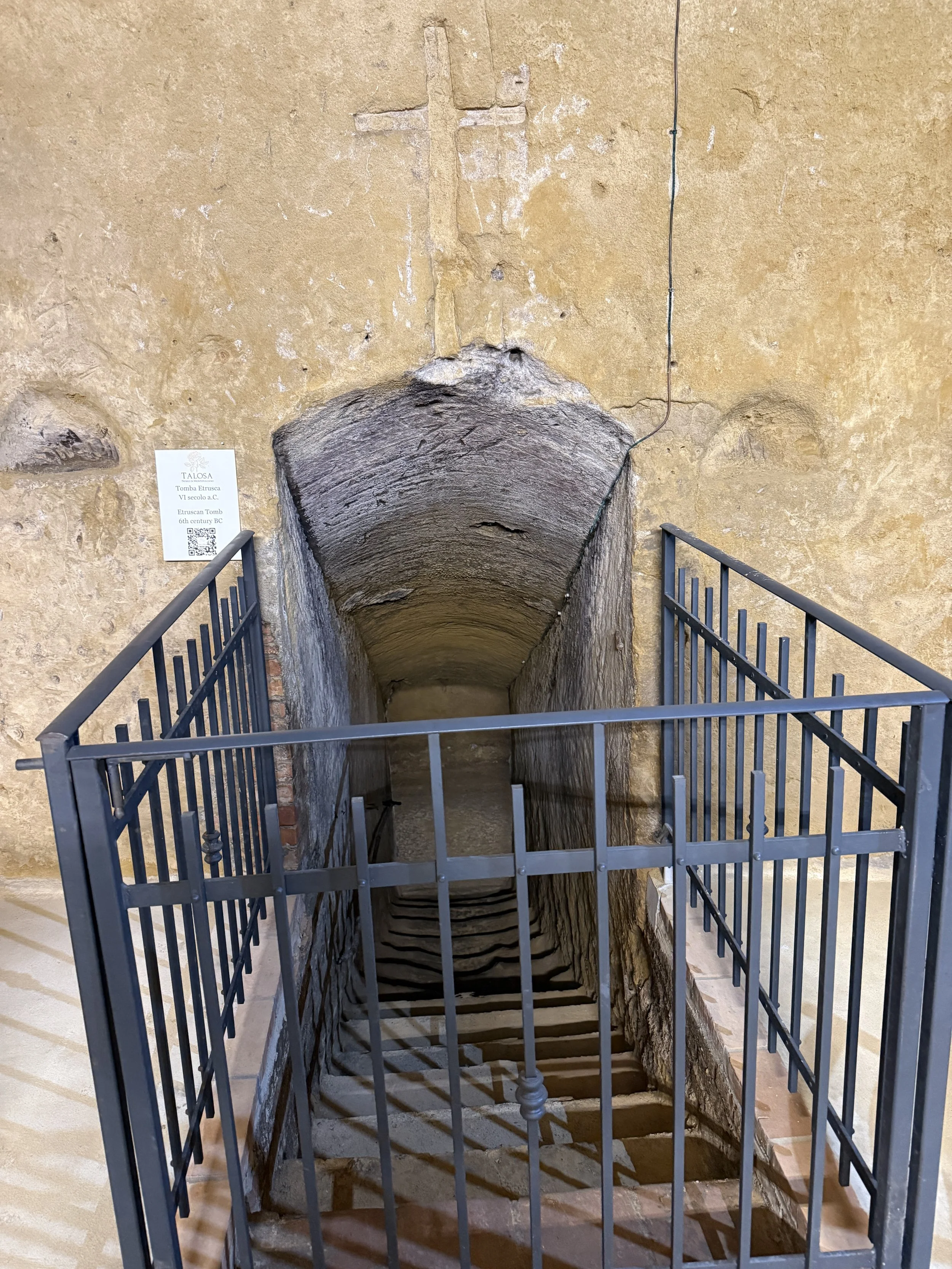Stairs going deeper into the cellar to the Etruscan Tomb