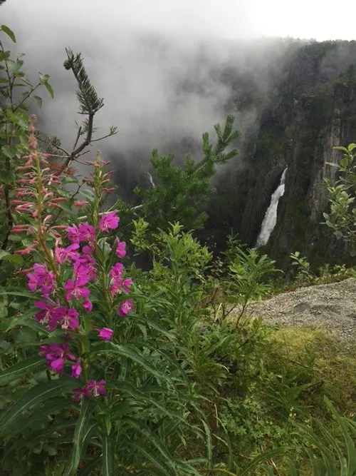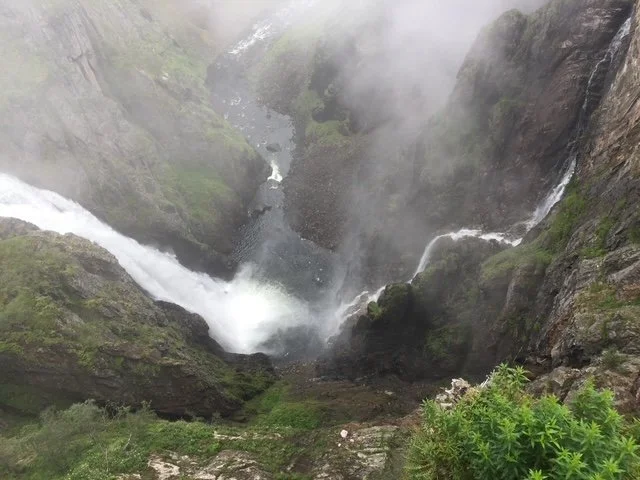 Miriam drove to Eidford and picked us up at the Ferry Landing. Then she too us to see Vøringsfossen Waterfall: One of Norway's most famous natural attractions, this stunning waterfall has a total drop of 182 meters (597 feet) into the Måbødalen canyon.