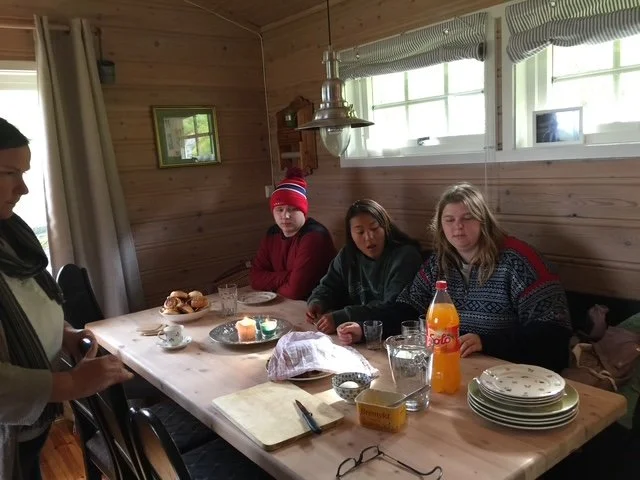 Took a car ferry across the fjord to hike a glacier, took a few selfies with the local wildlife (sheep and cows) then ended up at Miriam's parents cottage. Had coffee and cinnamon rolls (like we have had everyday. Yum! So this is where my mother gets it from! Ha ha) and we got to make Melkekaker (milk cakes). Feeling so fortunate to have Miriam Froastad and her family in my life!
