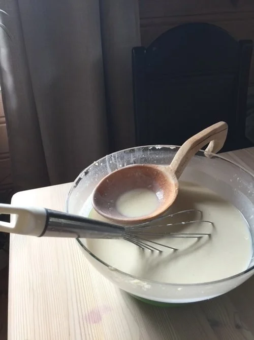 Miriams dad, Ronny had set up an outdoor griddle for us to make Melkekaker (milk cakes). This in Norway refers to various soft, pan-fried flatbreads or griddle cakes, similar to pancakes but often thinner, using buttermilk and flour, cooked on a griddle (takke) until golden, perfect with butter, jam, or brown cheese, a staple alongside other Norwegian flatbreads like crispy Flatbrød or potato-based Lefse. We each gat a chance to make our own. To make one, you poured the batter on the griddle, waited for it to cook. Then flipped it over with a flat wooden spatula.