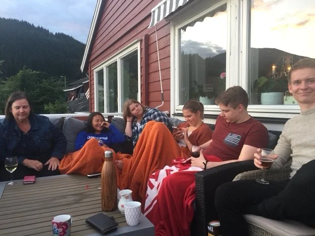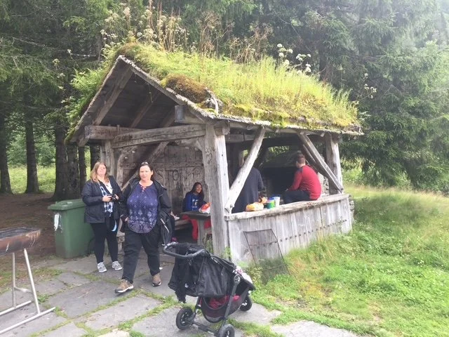 Next, Miriam took us for a hike. We stopped at a traditional Torvtak for lunch. This is a traditional Scandinavian structure with a sod roof. Miriam has really matured since she lived with us. She had planned and packed the entire lunch for us. She even had wood to start a fire for cooking our hot dogs. I can tell that she is going to be a great mother!