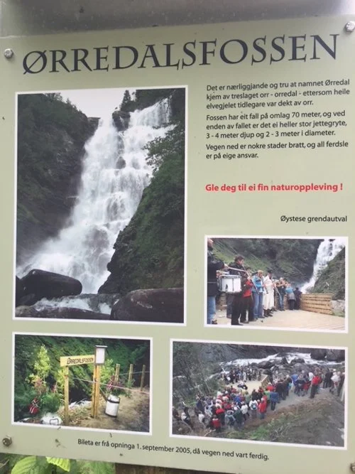 Our first adventure was a trip to Steindalsfossen Falls. This is a small water fall near Oystese that has a trail that you can hike under the falls with out getting wet. The trail was easy to hike adn we got a lot of great pictures.