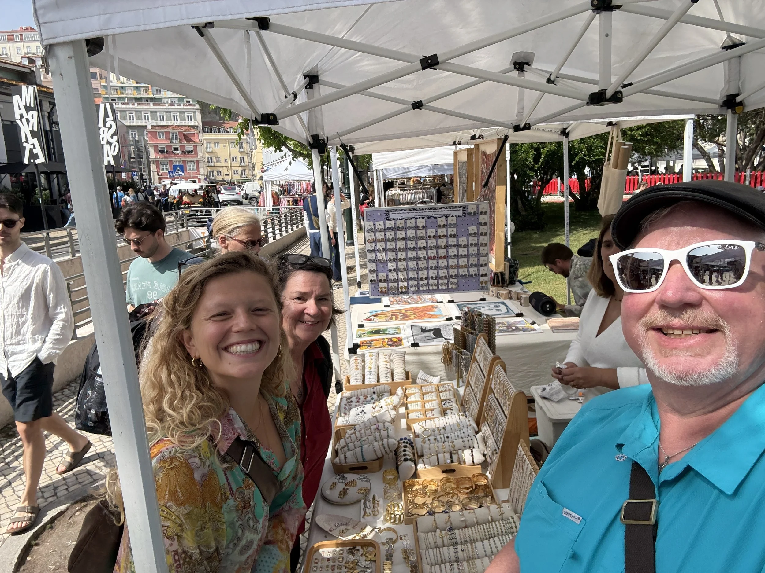 We had scheduled a Tuk-tuk tour through Airbnb experiences. Laura wanted to show us some of her favorite areas, and one was near where we were to meet for our tour. There was a craft fair in the Dom Luís Square Garden in this area. Sandy found a jewelry booth where she picked up a few pieces for herself and our daughters.
